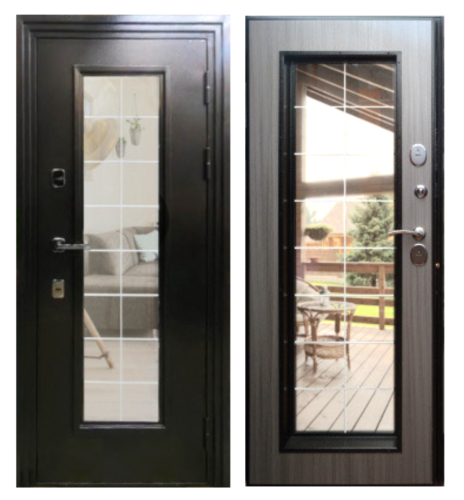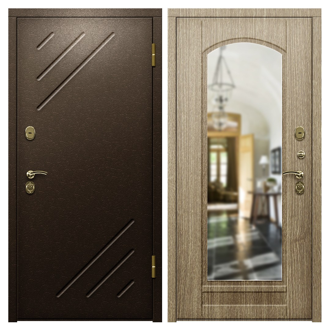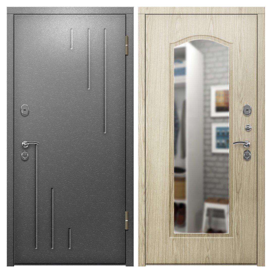 Дверь стальная ДС 3к 90 т с зеркалом МДФ/МДФ