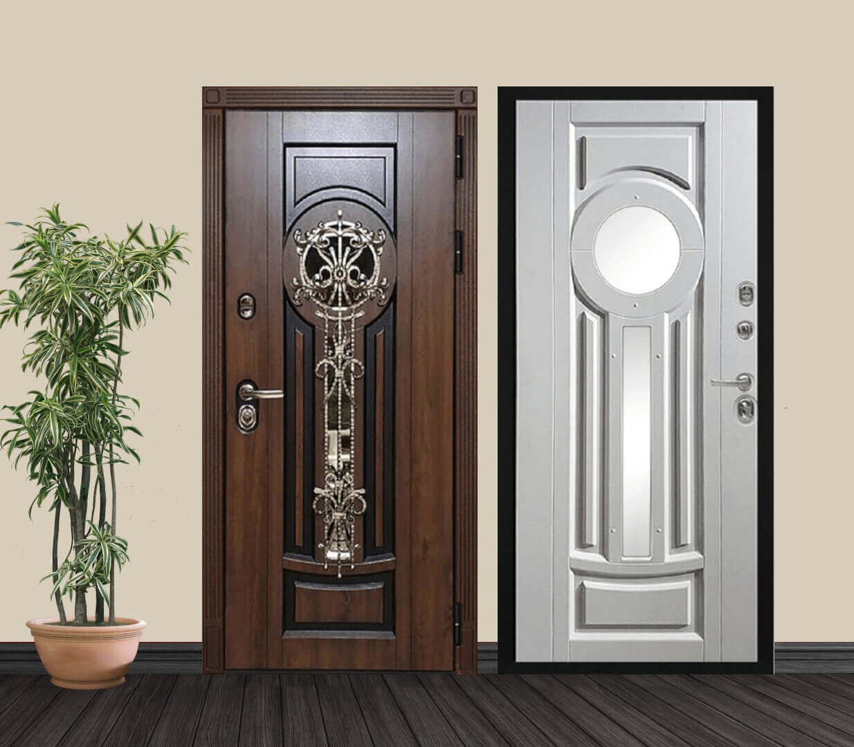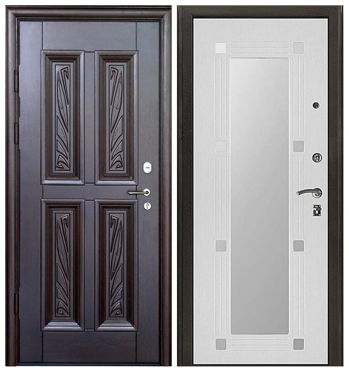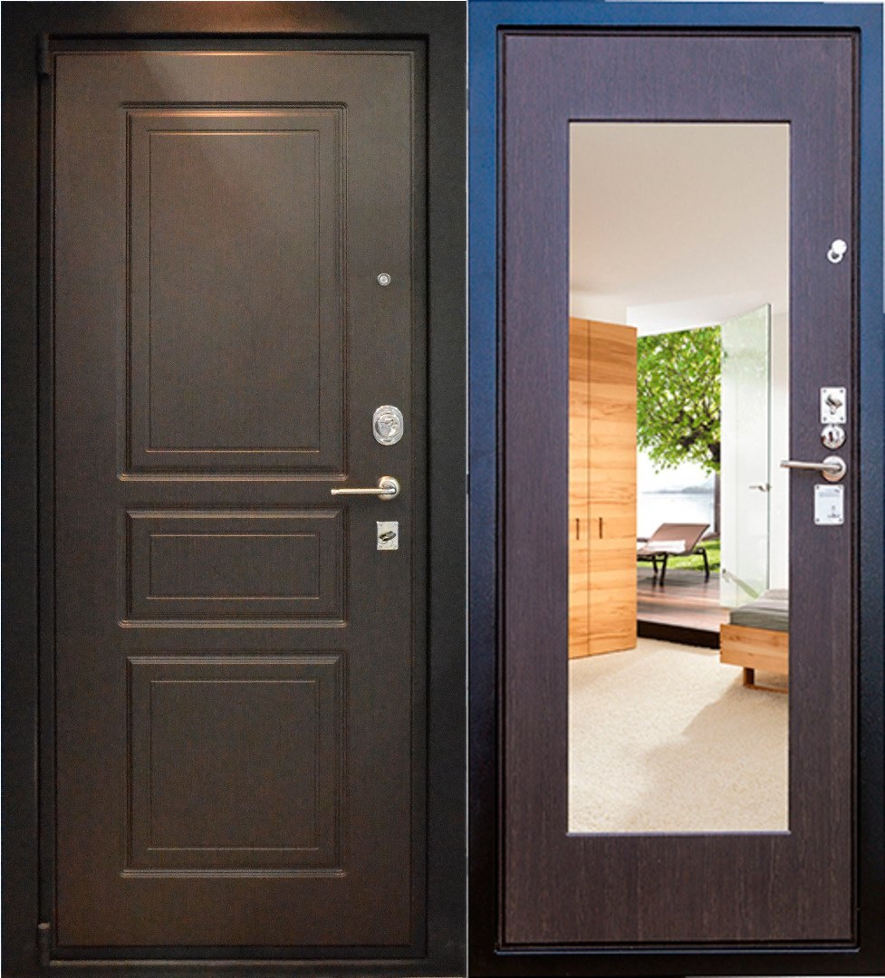 Дверь стальная ДС 3к 90 т с зеркалом МДФ/МДФ