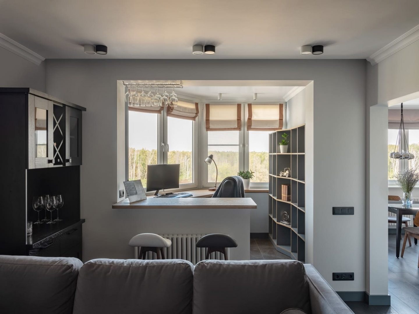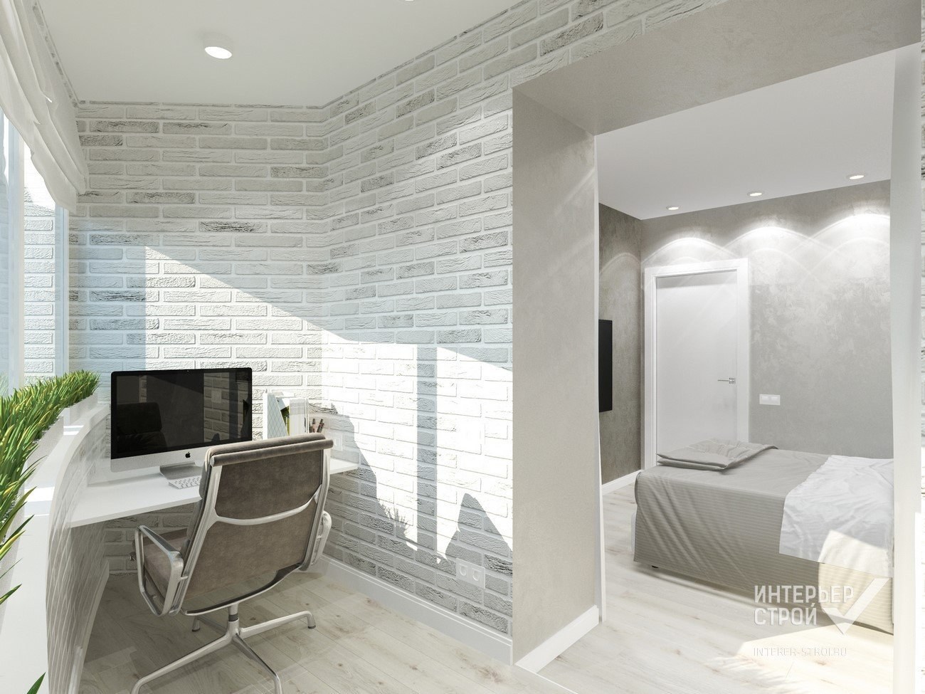 Лоджия Объединенная со спальней фигурной перегородкой