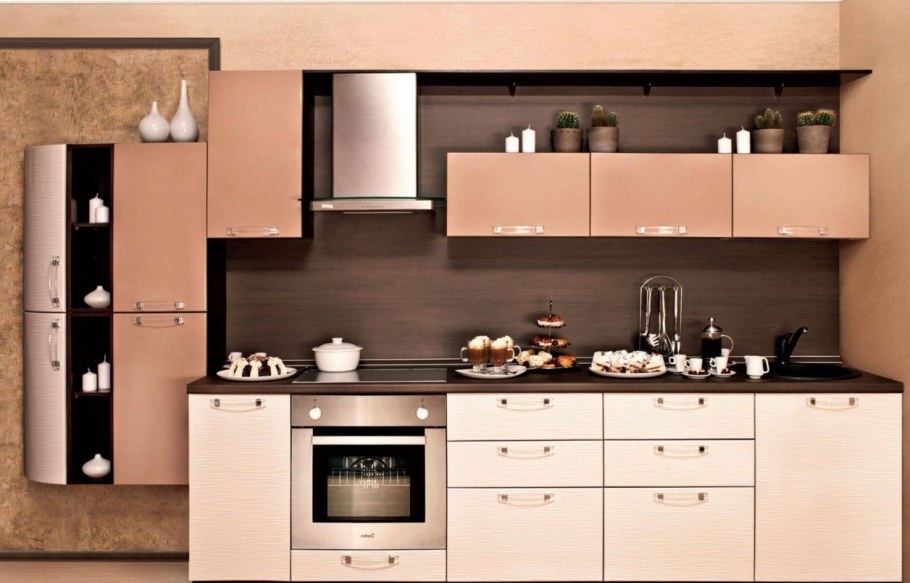 Кухня цвета кофе с молоком