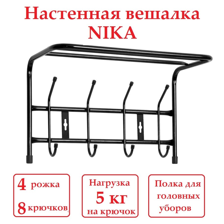 Вешалка настенная с полкой «комфорт», 7 крючков, 45×11×55 см, цвет чёрный