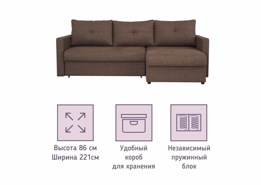 Угловой диван-кровать DREAMART Уильям с левым углом