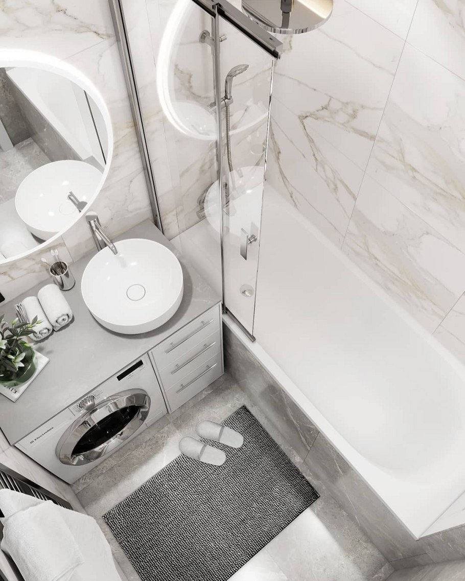 Ванна в хрущевке со стиральной машиной в современном стиле