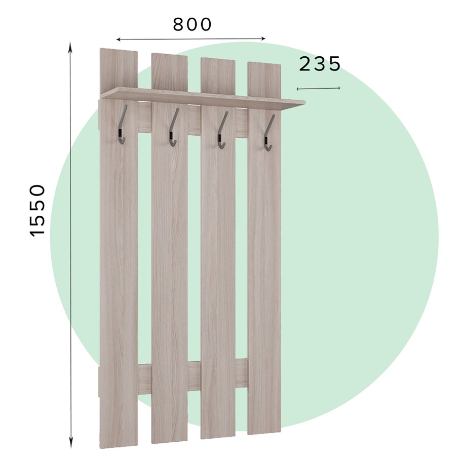 Вешалка в прихожую, вешалка настенная айс 03.292, 53.5х18.6х122 см