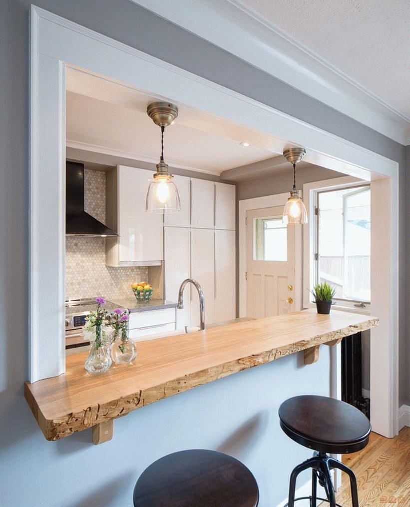 Кухня с гостинной 30кв м интерьер с барной стойкой