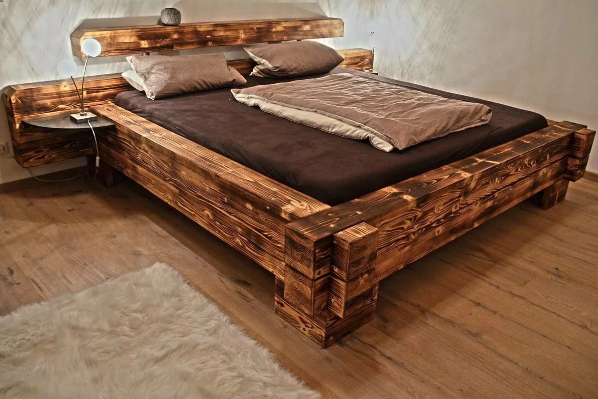 Кровать из деревянных брусков