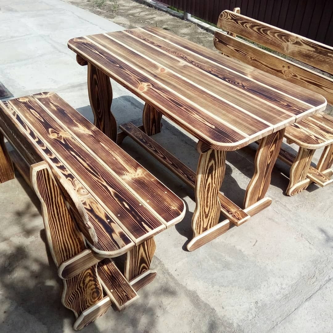 Стол деревянный обожженный