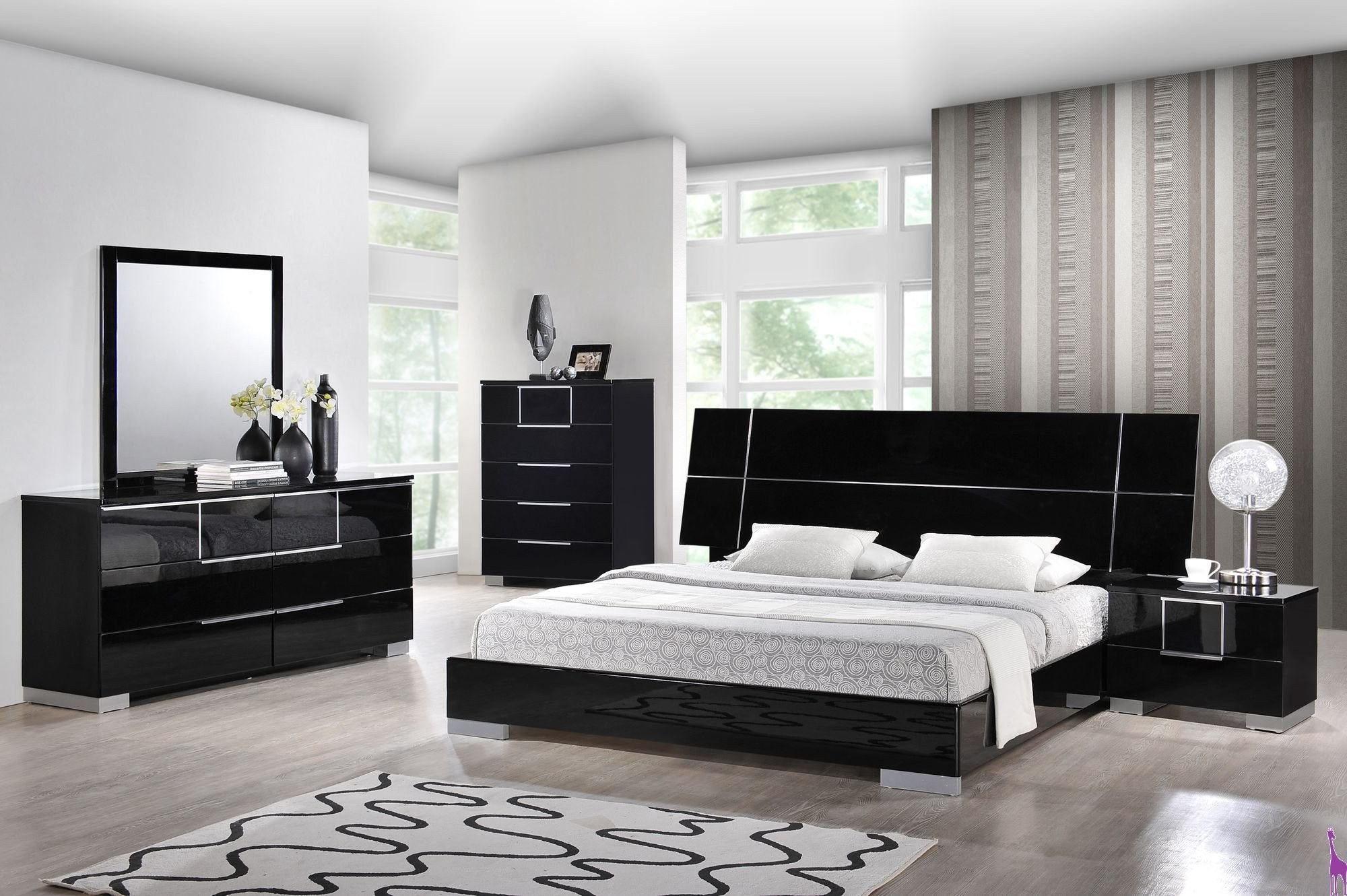 Спальный гарнитур Белла Блэк черный глянец
