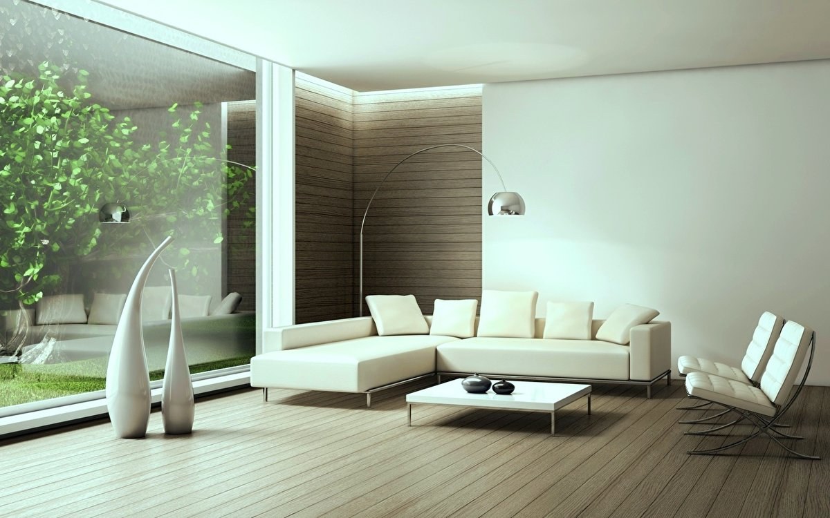 Гостиная в современном стиле с ламинатом