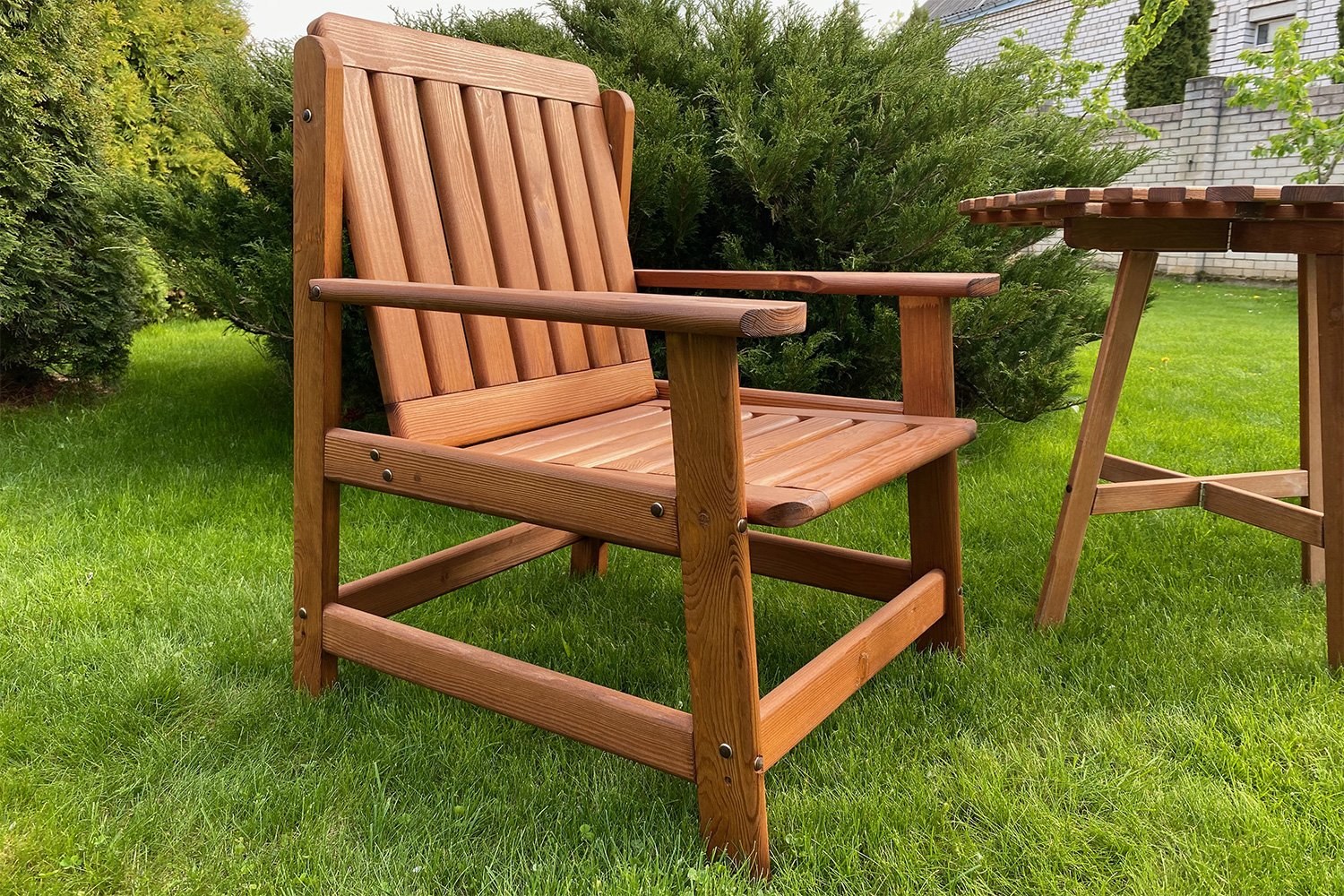 Деревянные кресла с подлокотниками для дачи