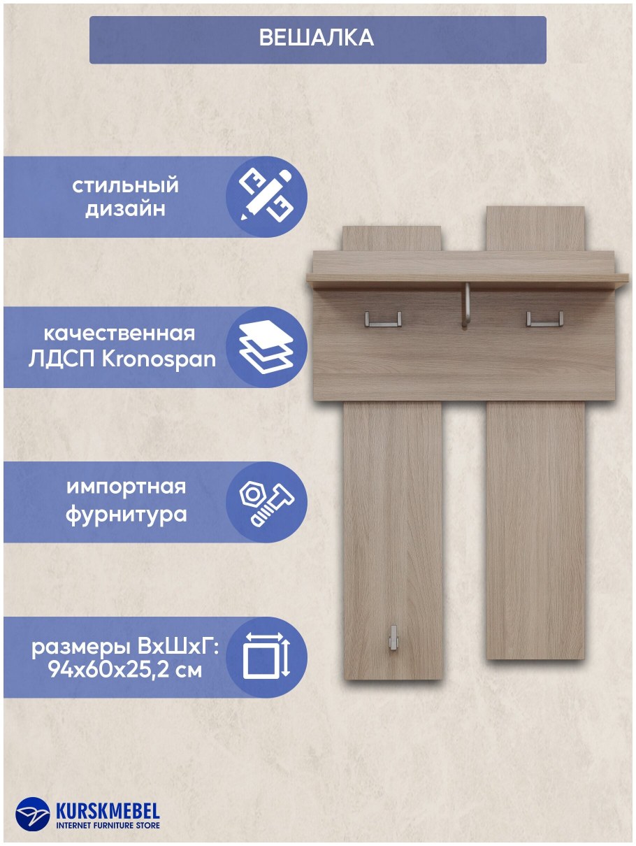 Вешалка в прихожую, вешалка настенная Ольга-лофт 6.1, 51х31х135 см