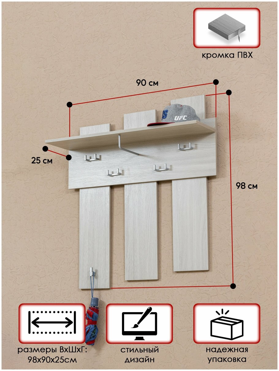 "Ривьера" вешалка в-4 ( ясень шимо св.) 1550*800*235ваша мебель