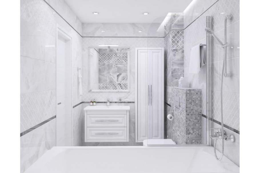 Бело серая плитка в ванной
