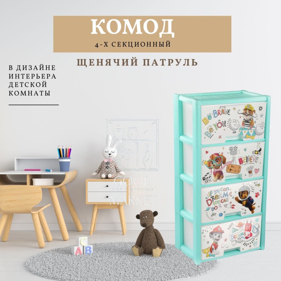Комод альтернатива м7989 "Щенячий патруль" 4-х секционный
