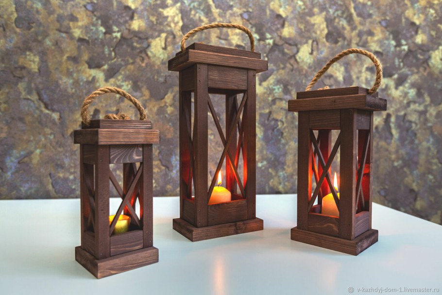 Деревянный фонарь подсвечник в интерьере