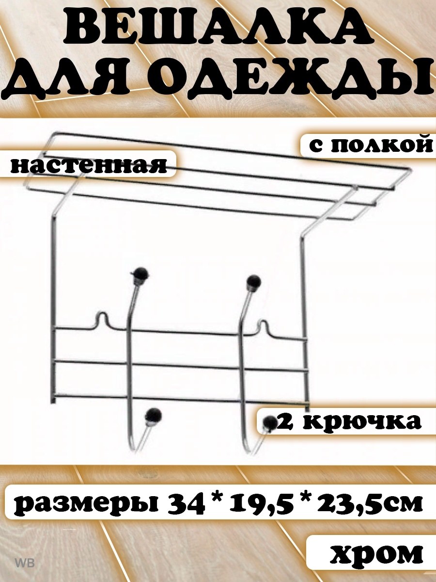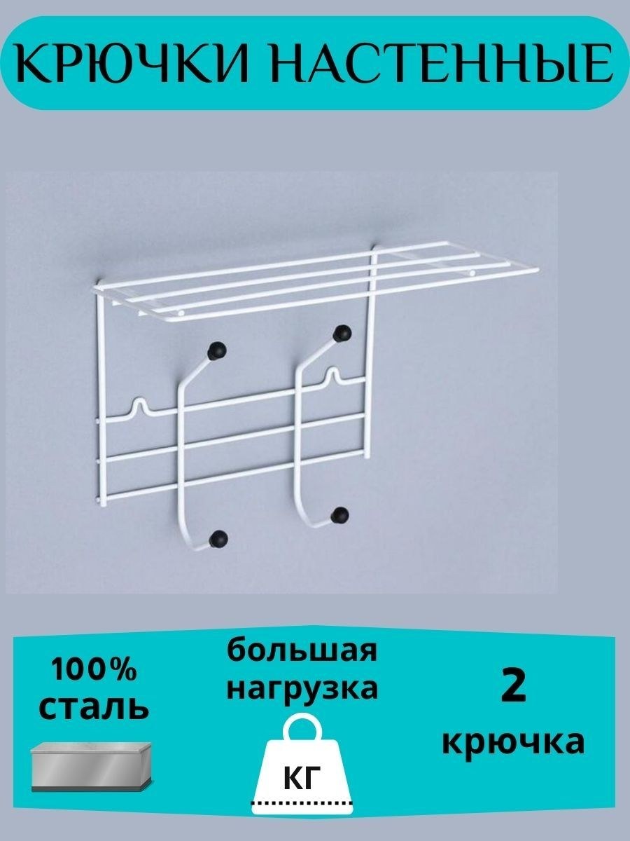 Вешалка настенная для одежды 2/2 крючка 22х7х4 см