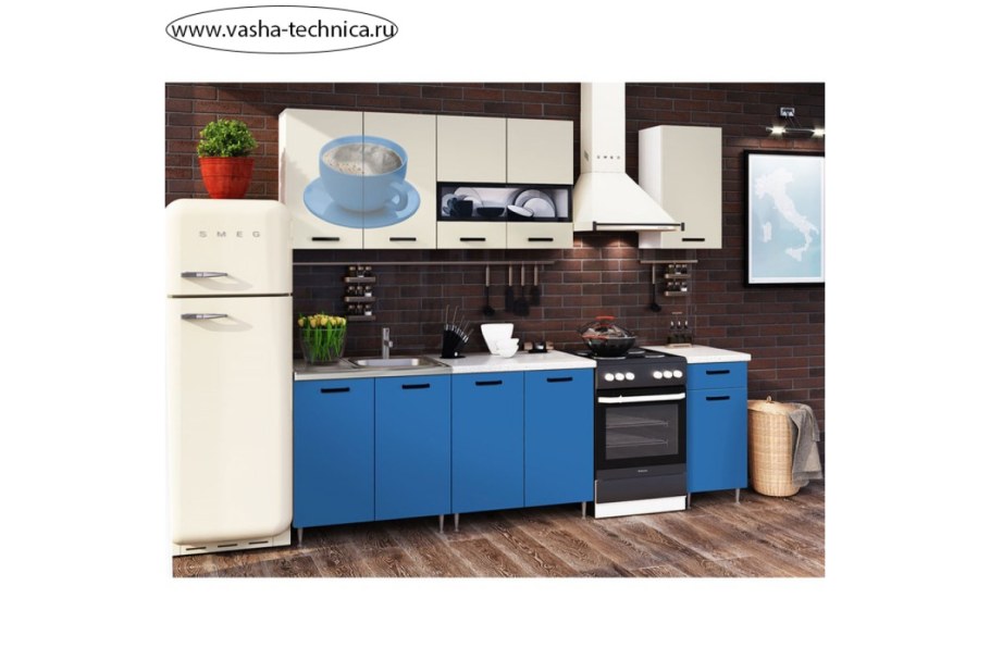 Кухонный гарнитур Рио 2.0 фотопечать бежевый синий 2000 мм