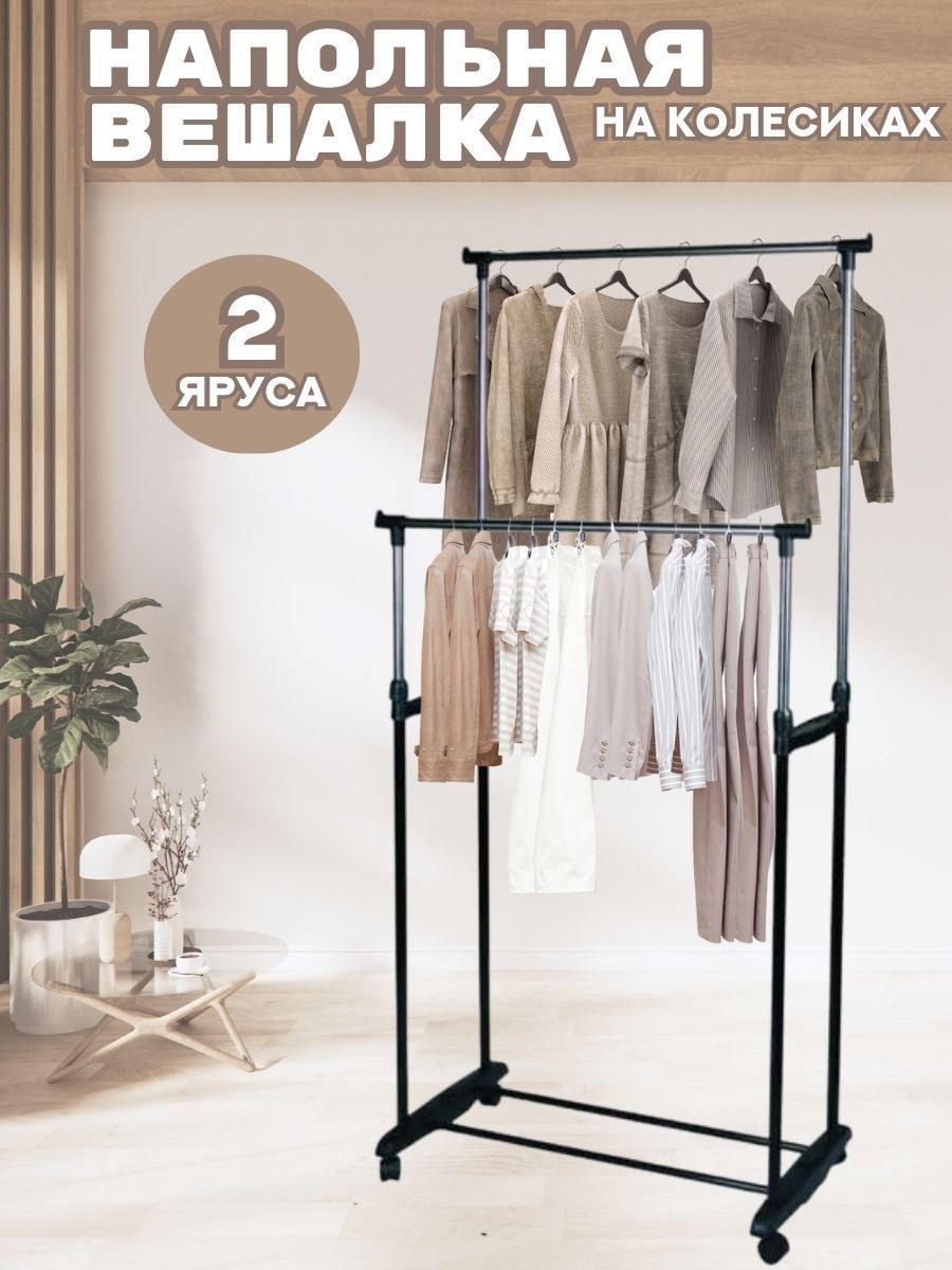 Вешалка напольная металл двухсторонняя передвижная st070r75r на колесах