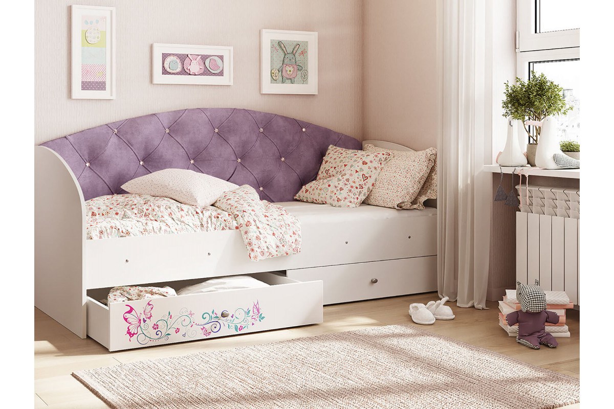 Кровать для девочки с мягким изголовьем