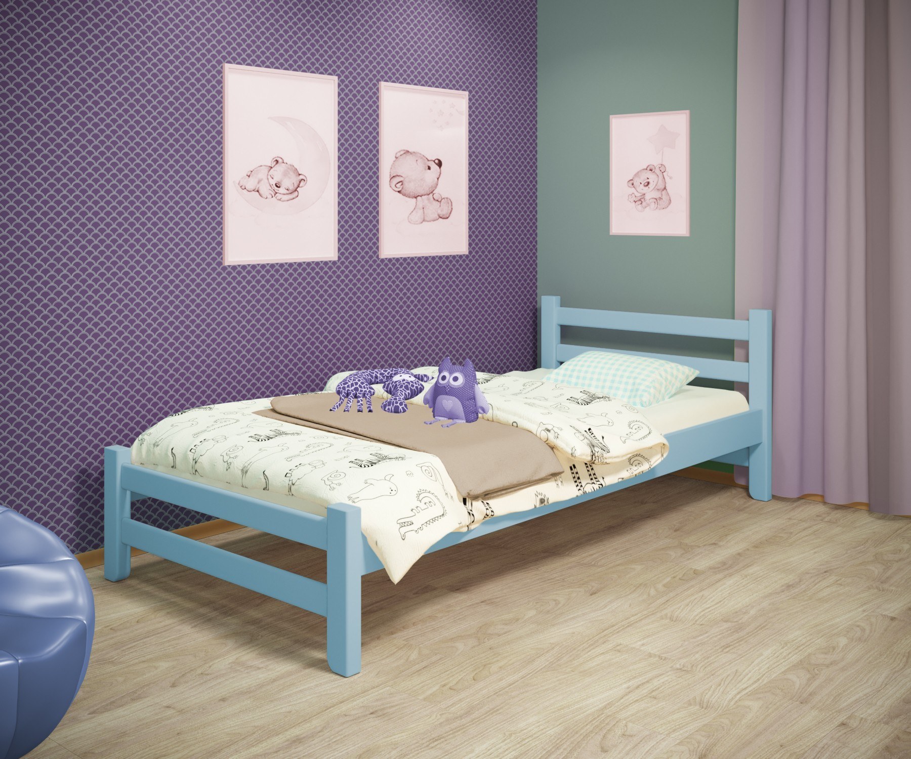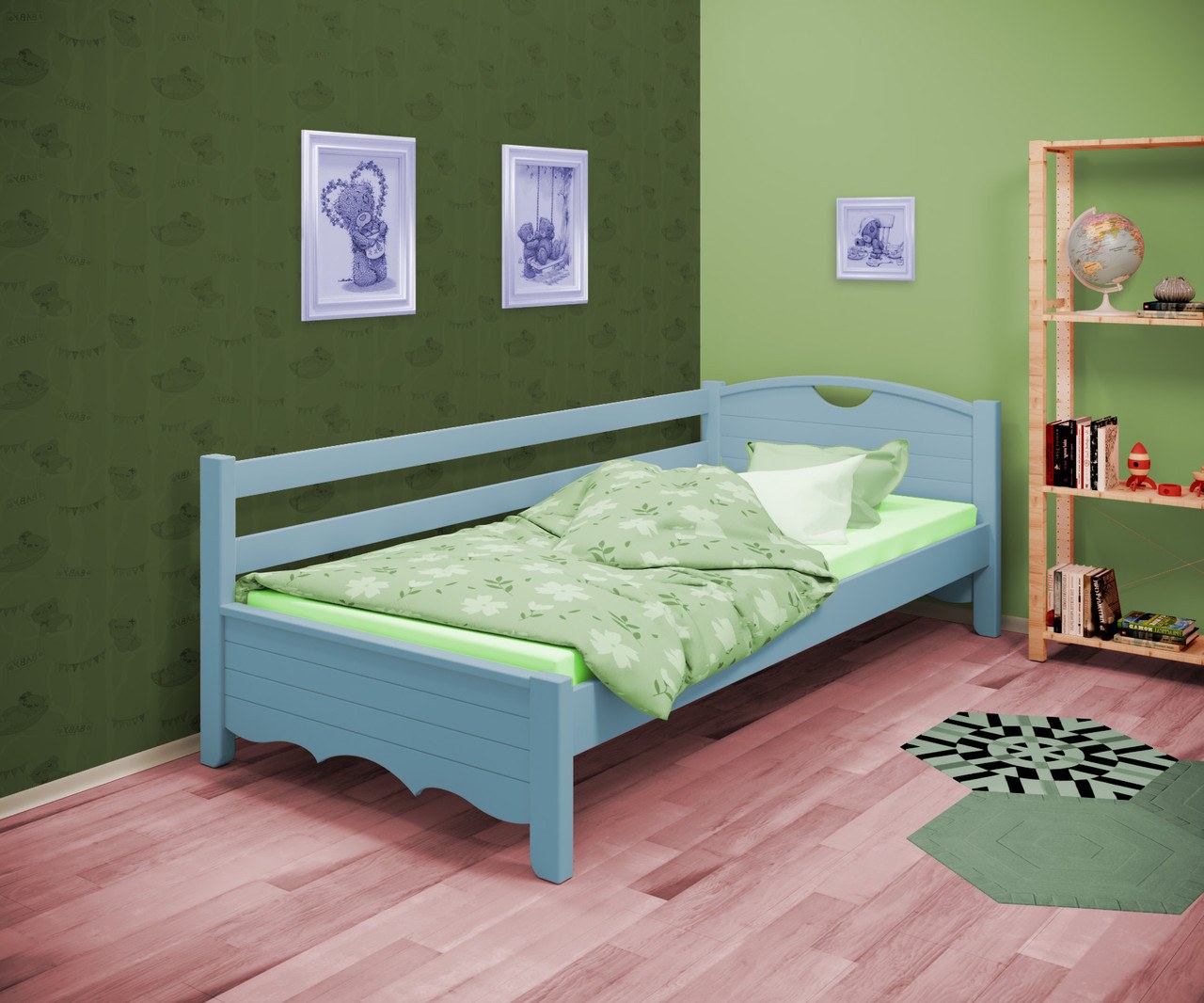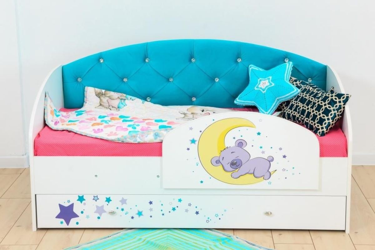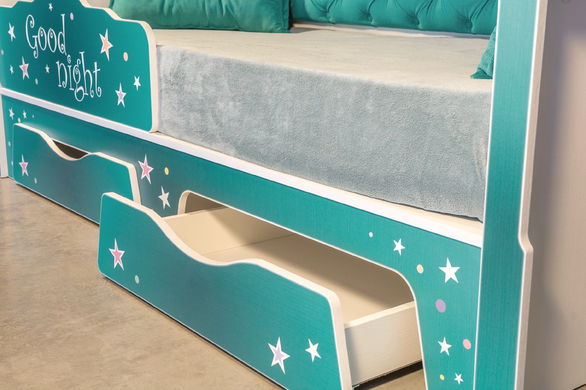 Детская кровать бирюзового цвета
