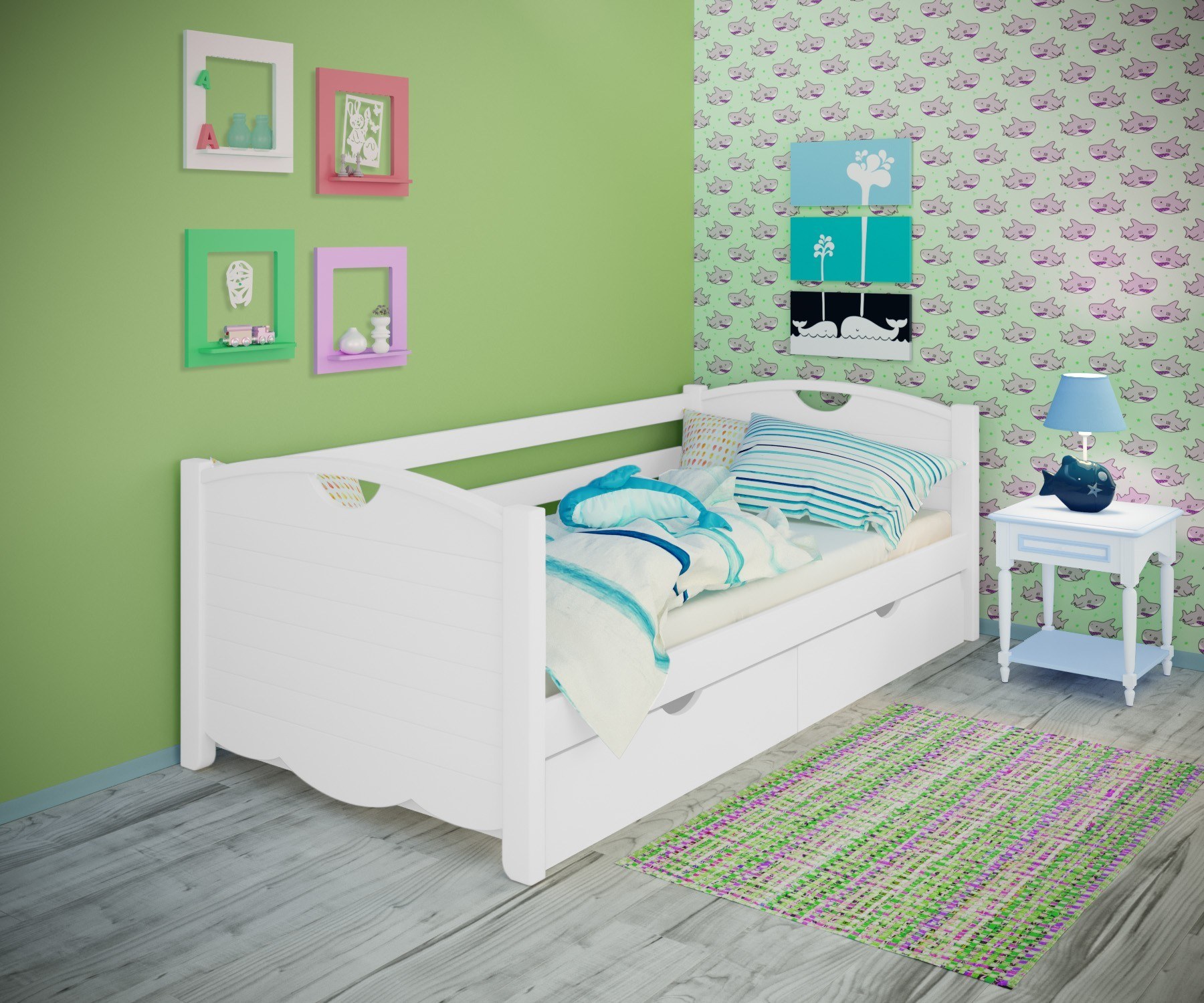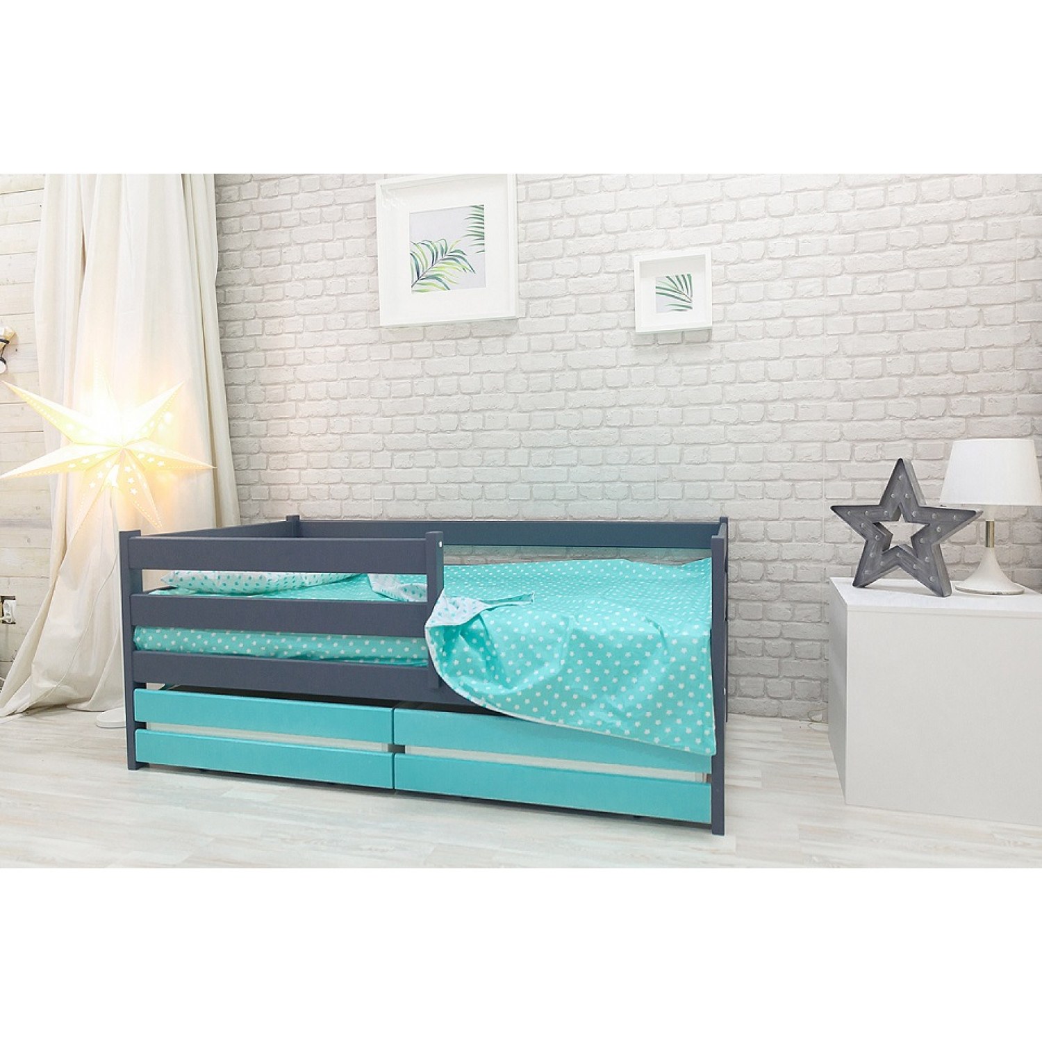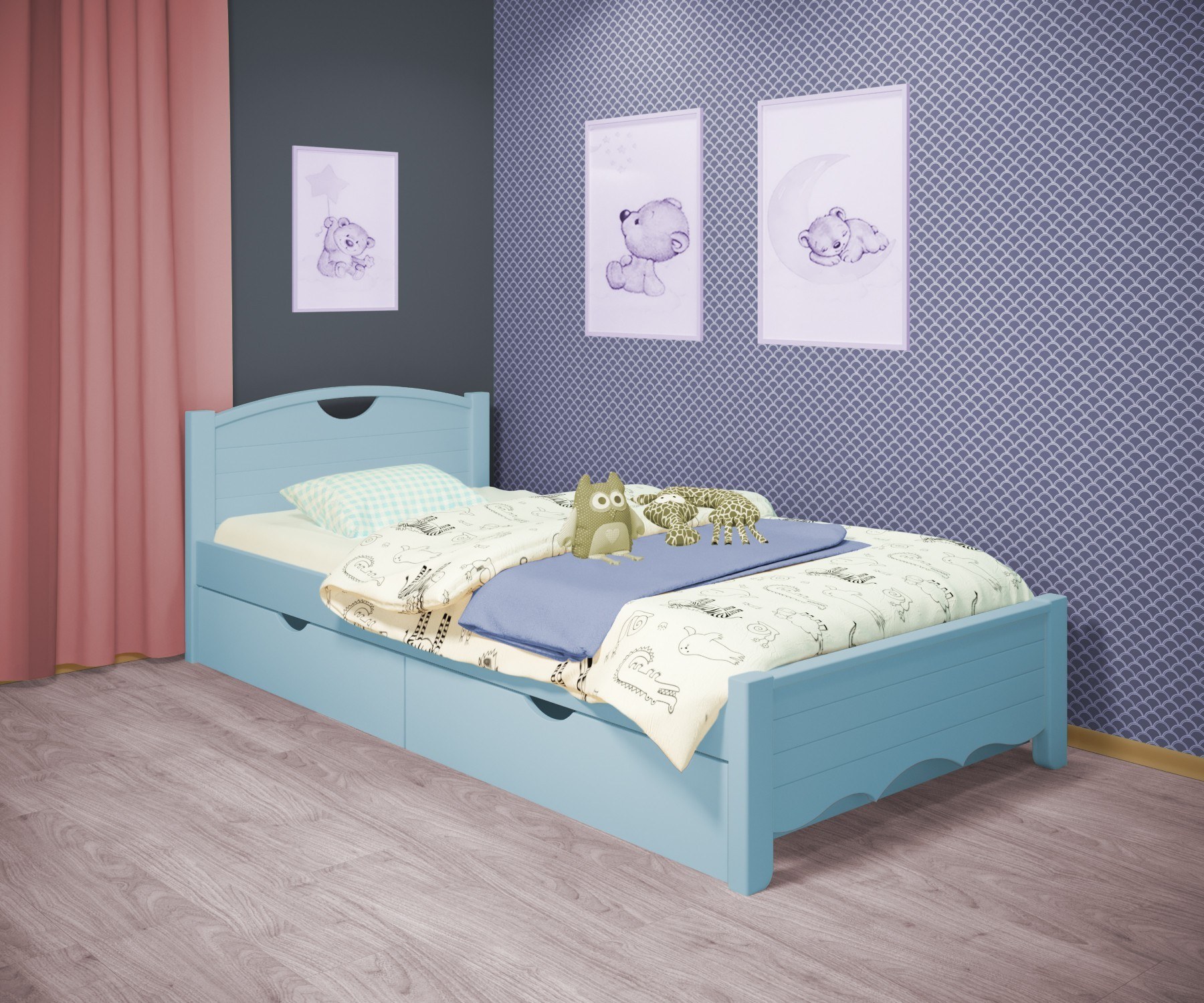 Детская кровать бирюзового цвета