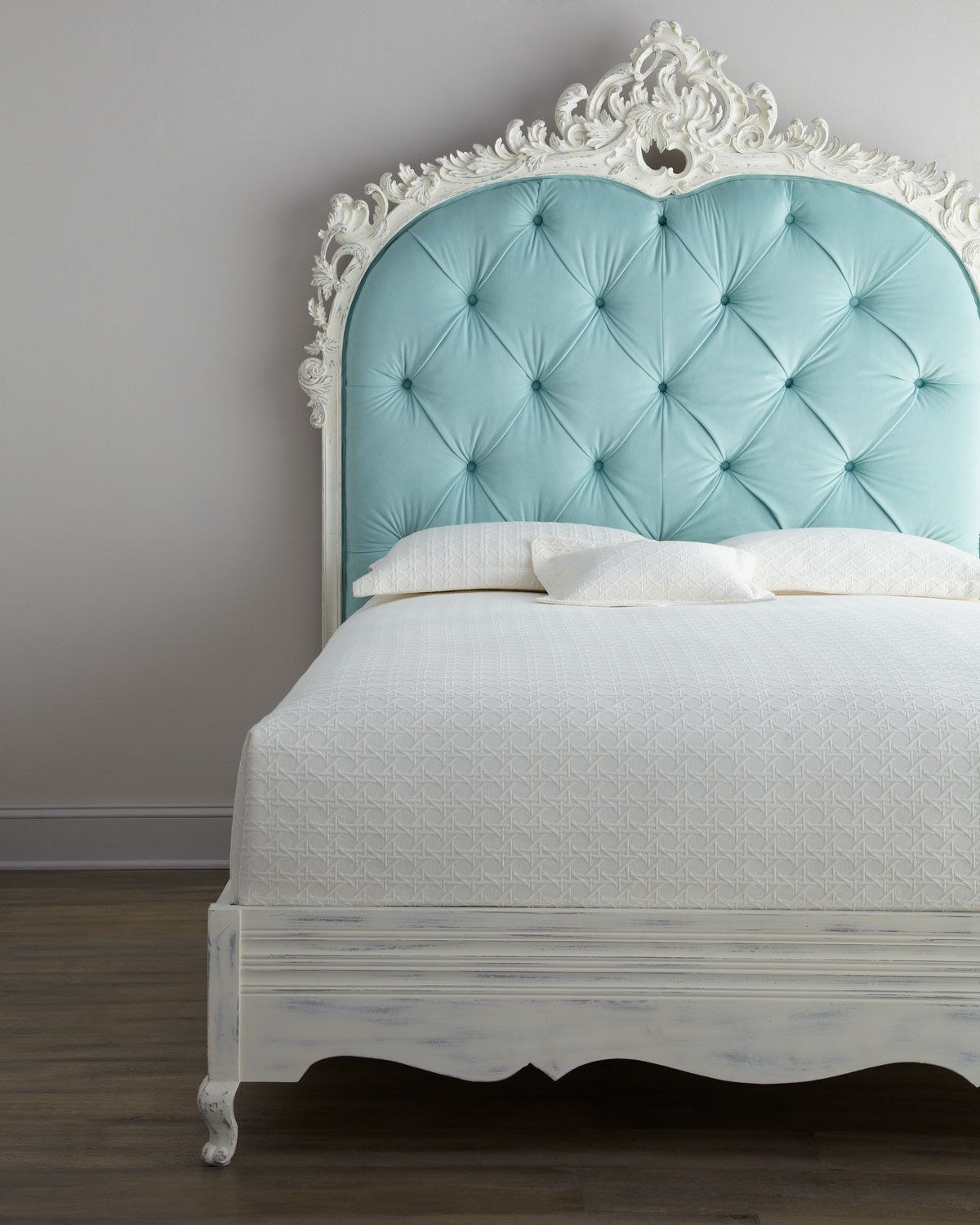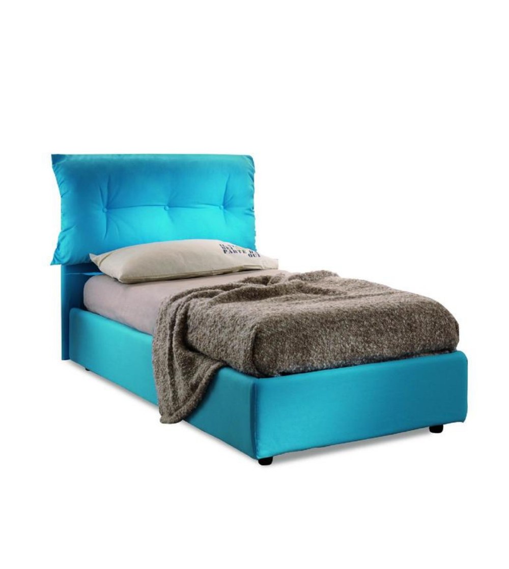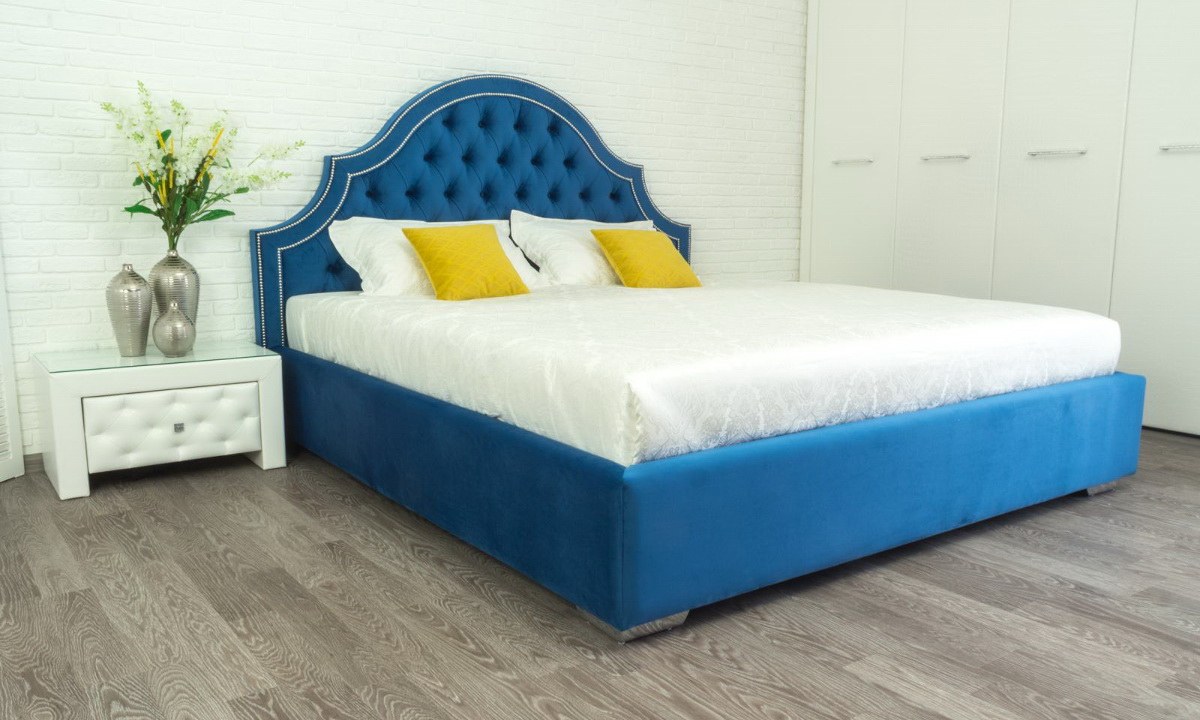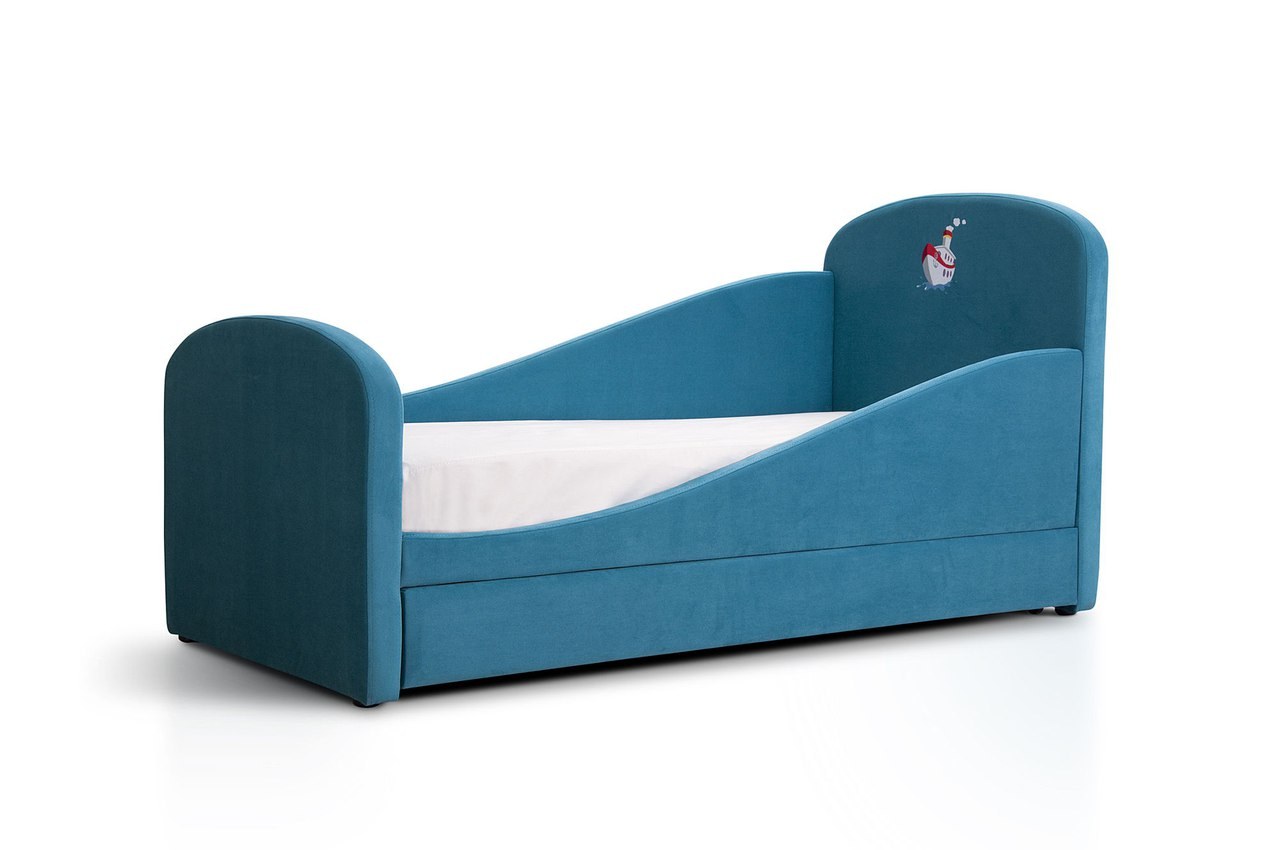 Голубая кровать с мягким изголовьем
