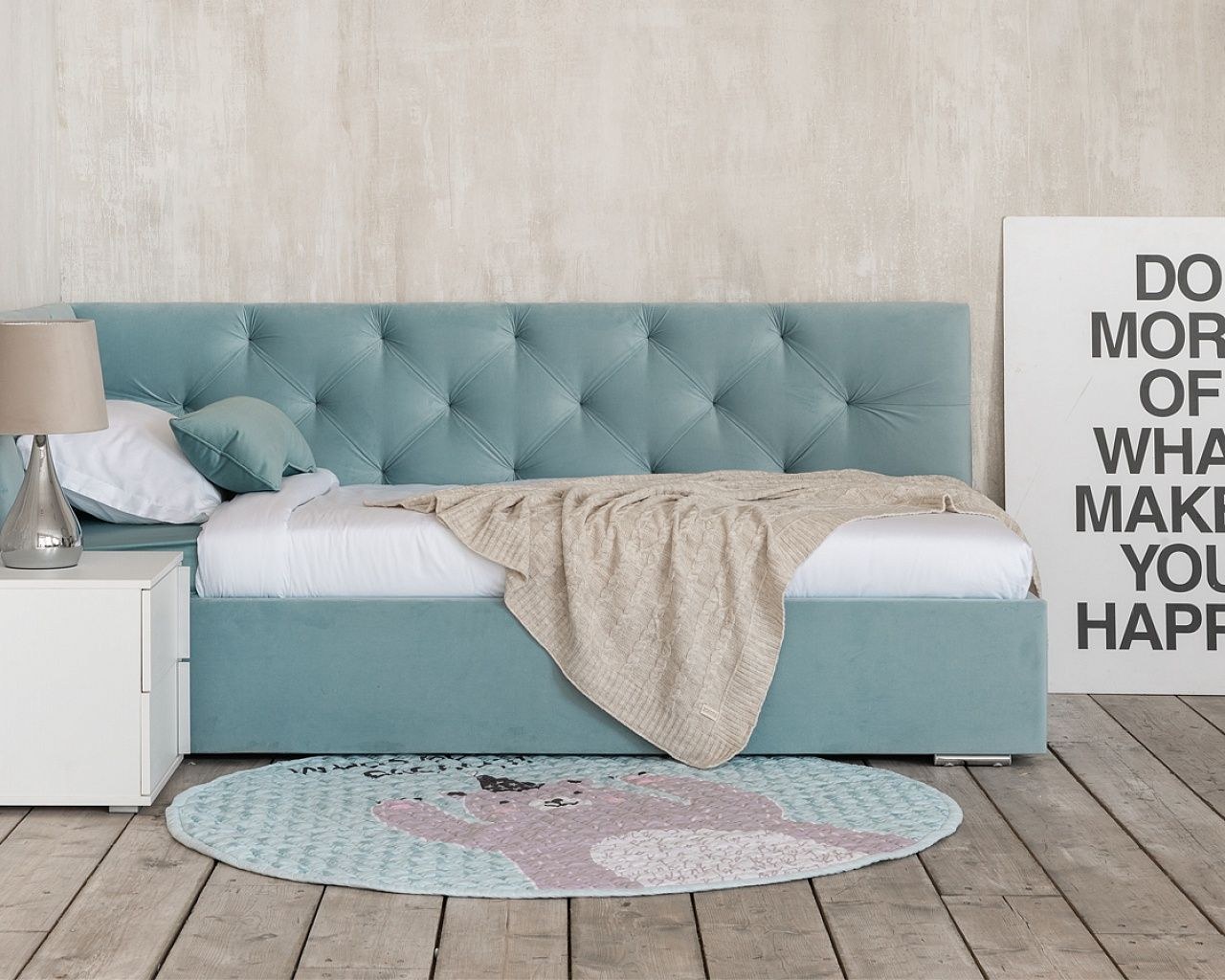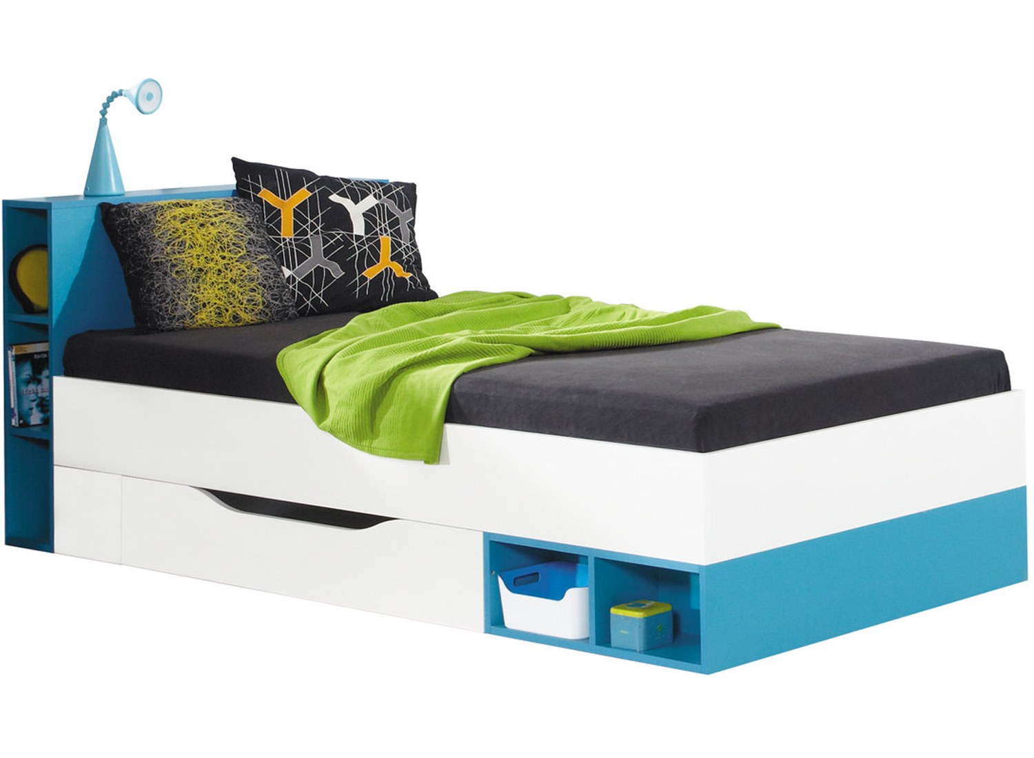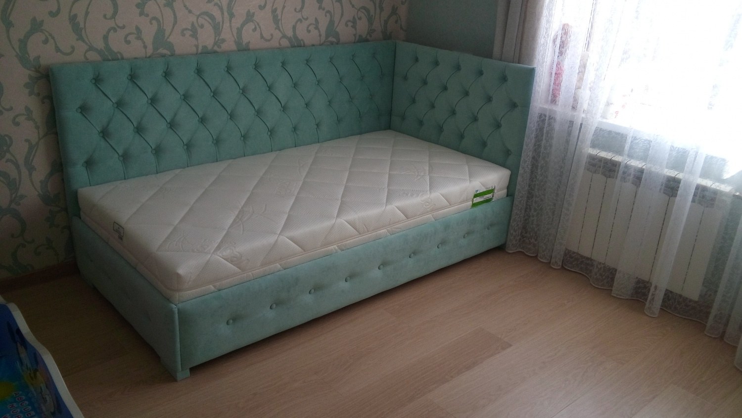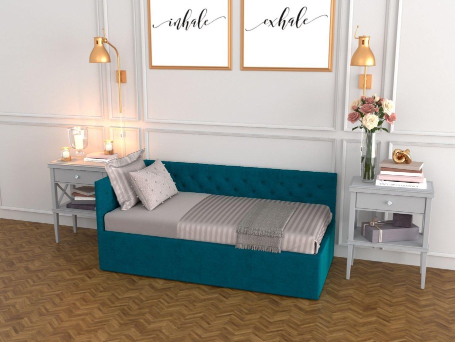 Бирюзовая односпальная кровать (69 фото)