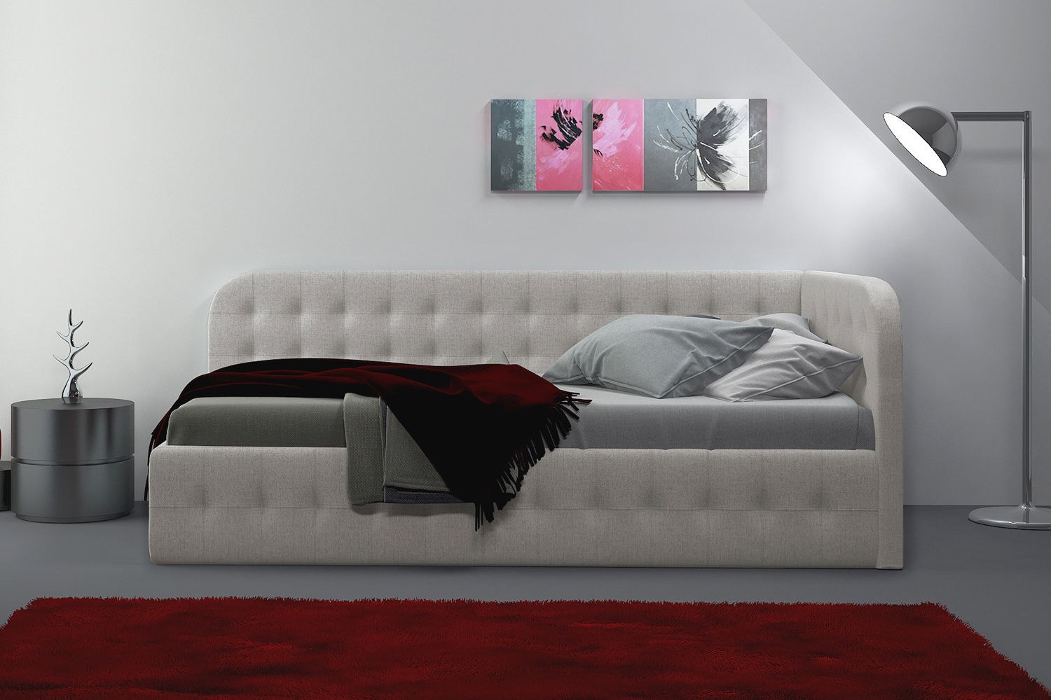 Кровать односпальная велюровая серая n-b1743-90gr от IMPERIUMLOFT