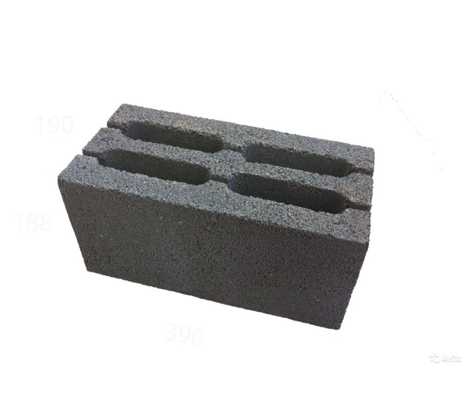 Блок бетонный фундаментный 190х190х390мм полнотелый