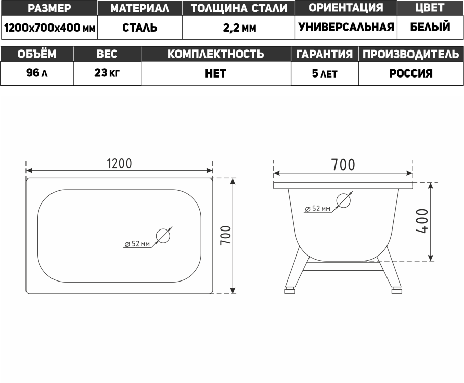 Ванна сталь 140х70 виз Donna Vanna DV-43901