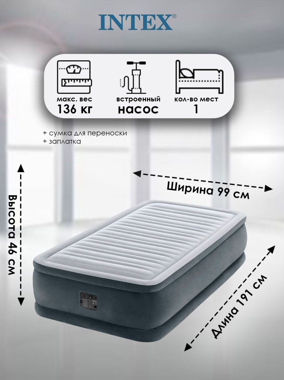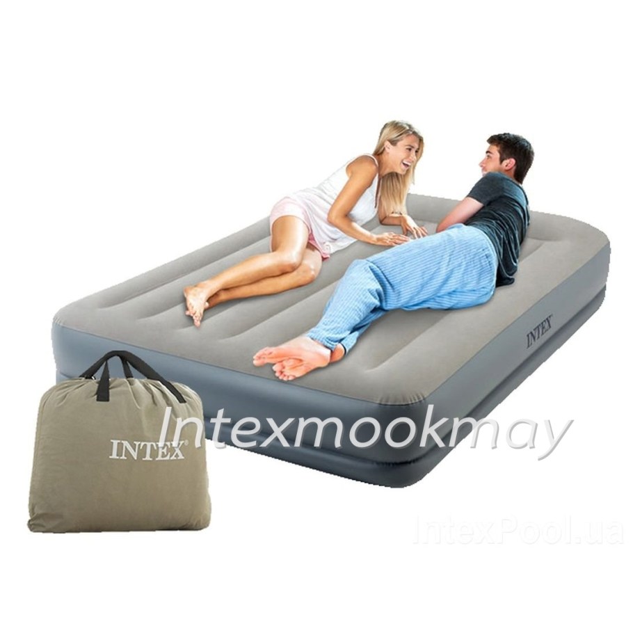 Односпальная надувная кровать Intex 64122 "Pillow rest raised Bed" + насос (191х99х42см)