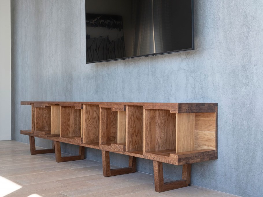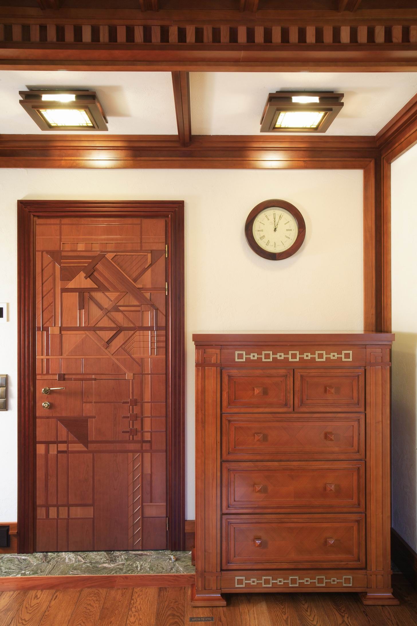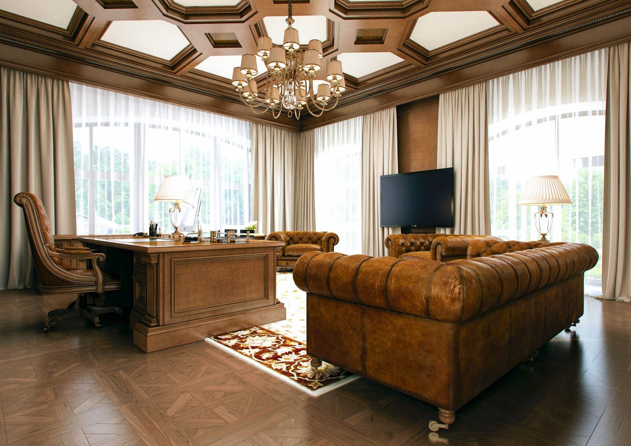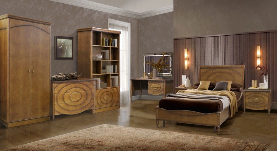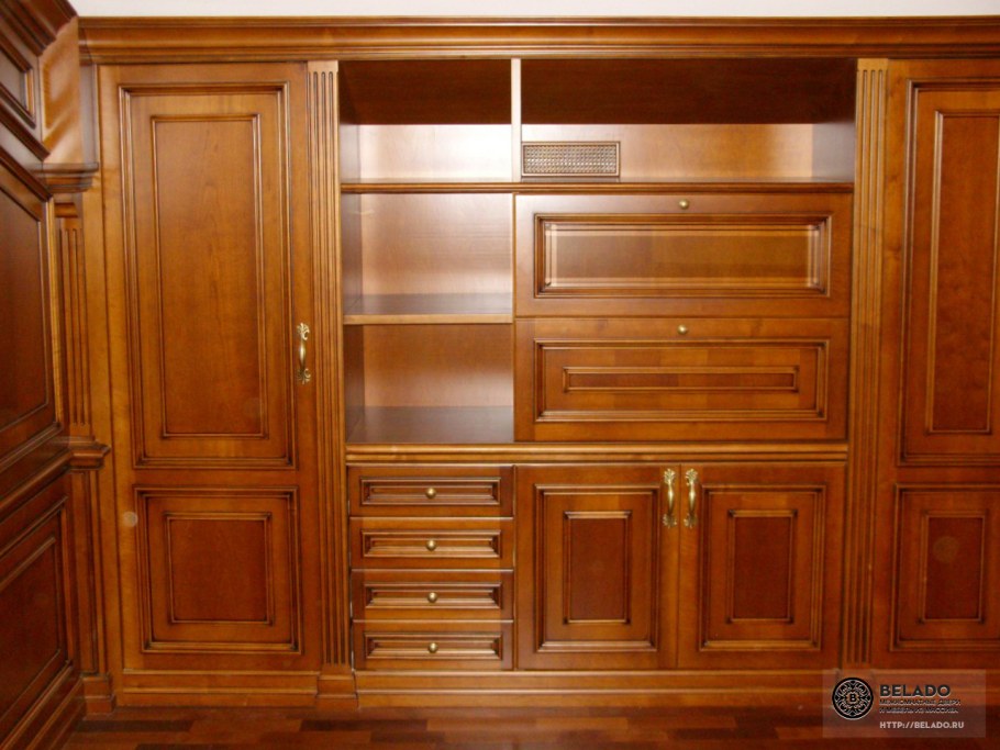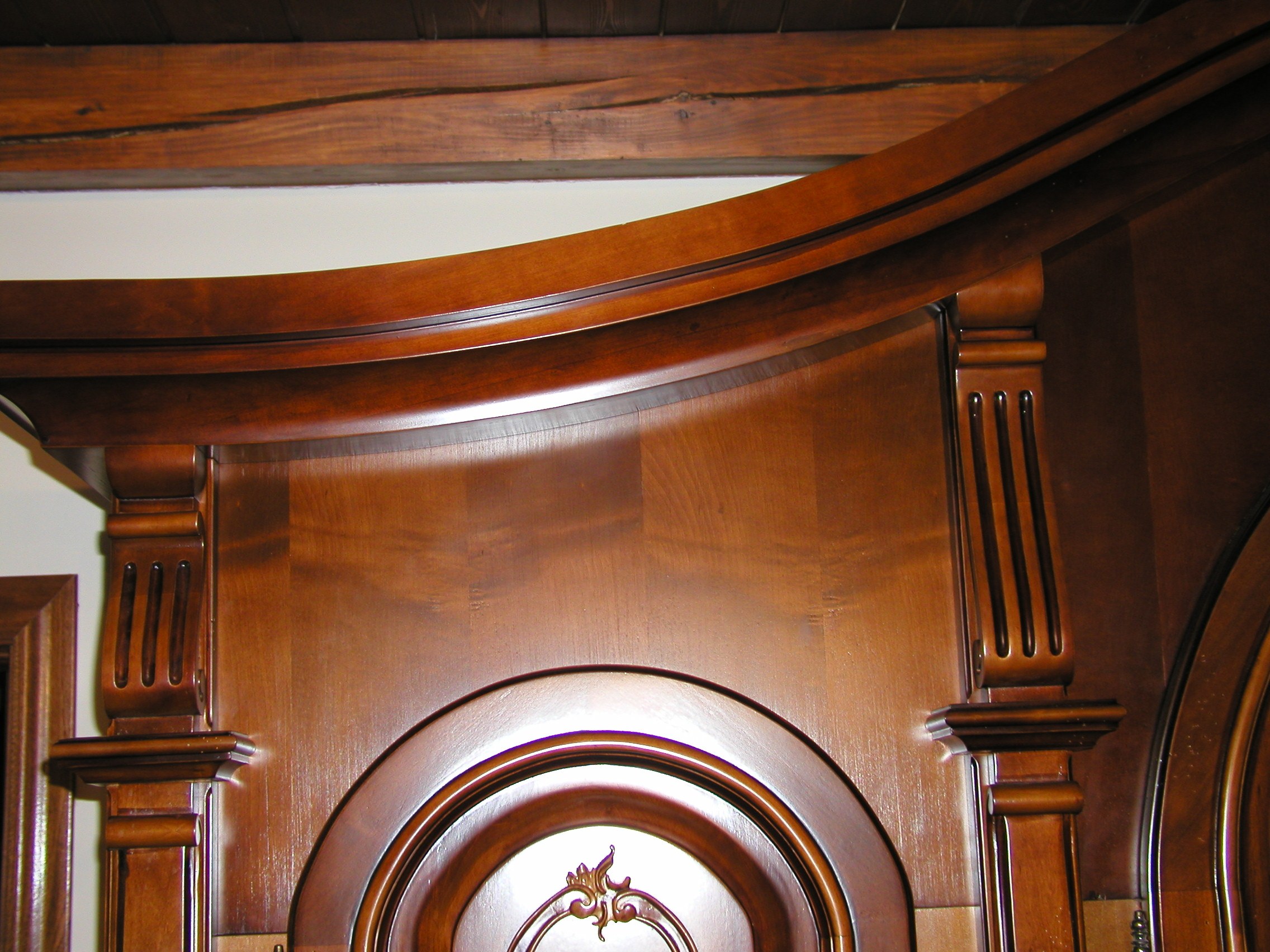 Дизайн кухни классика рыжая под дерево с барной стойкой