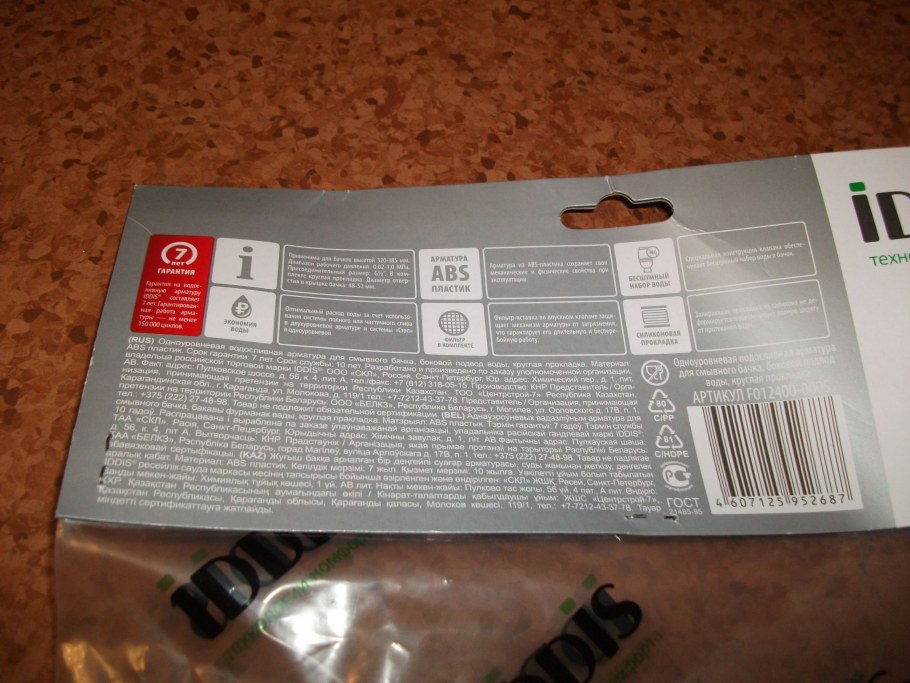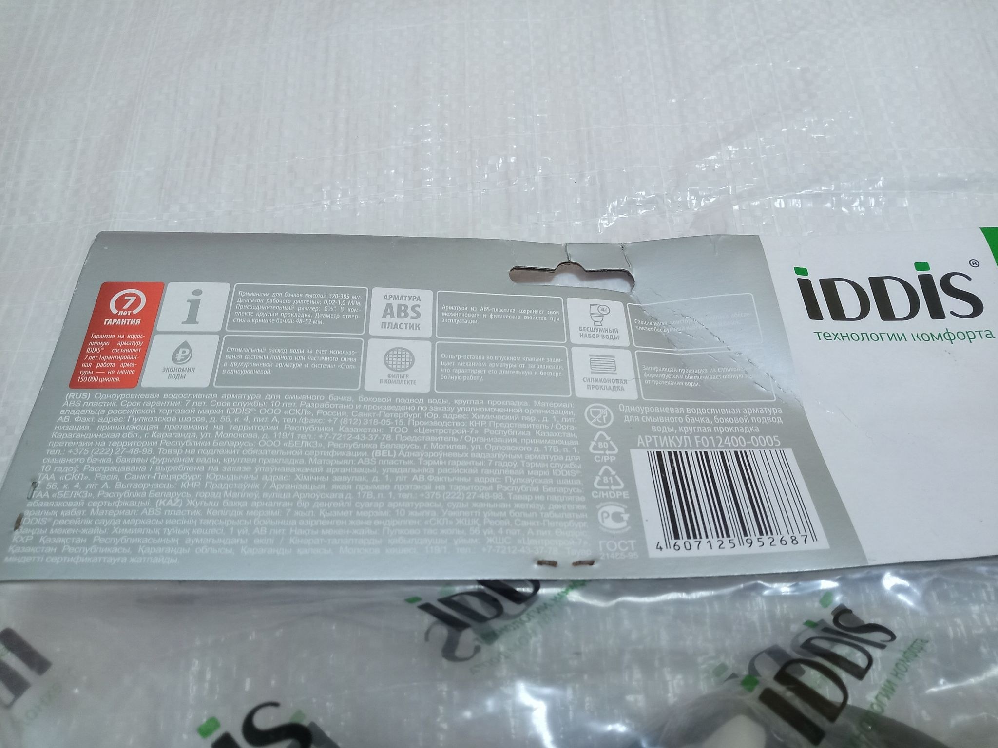 Арматура смывная IDDIS, 2-ур, н/п, Тип а, f012400-01k