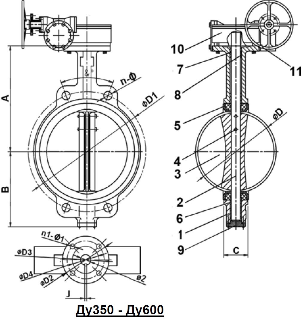 Затвор дисковый межфланцевый с редуктором, dn100, pn16
