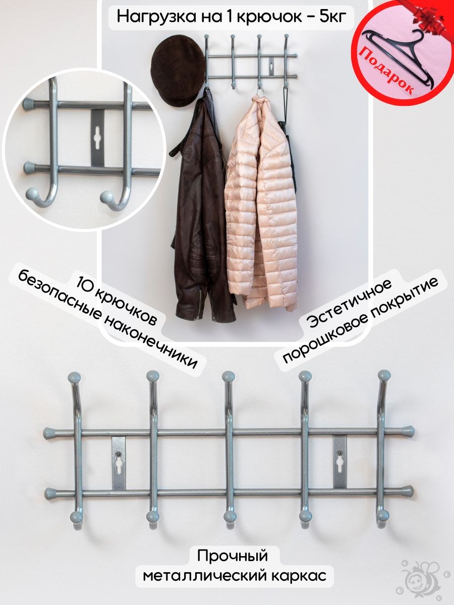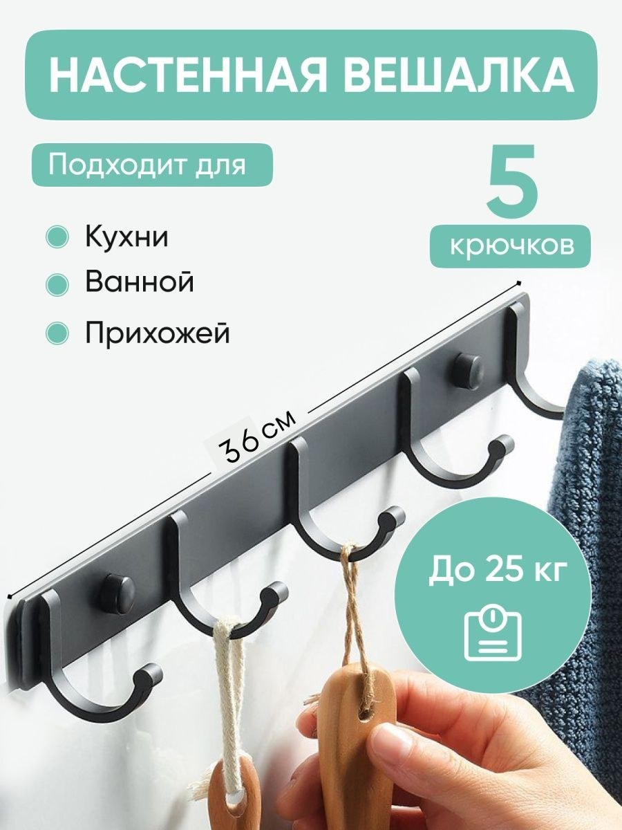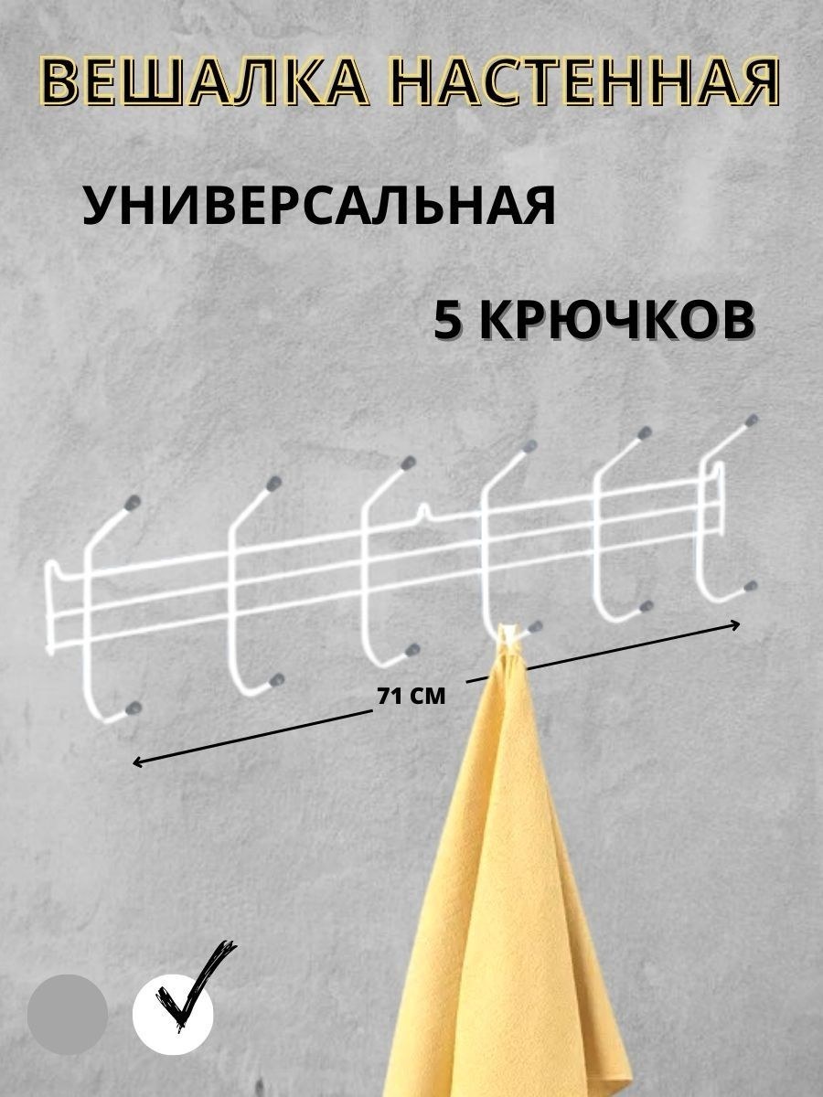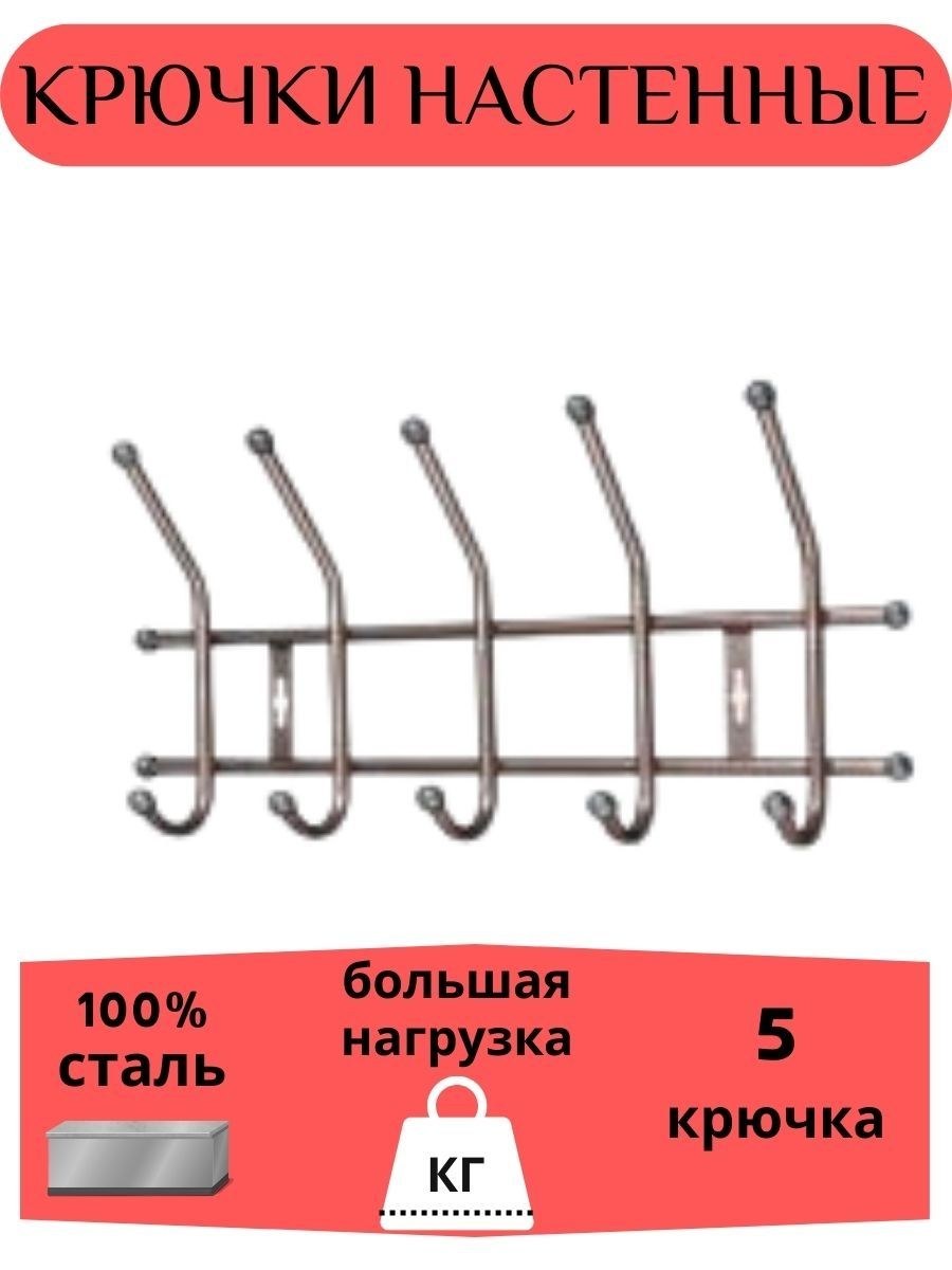 Вешалка настенная на 5 крючков габариты (ДШ) 761х170 мм