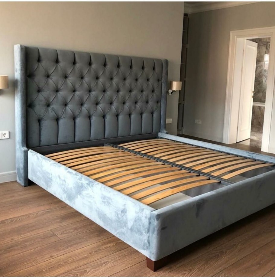 Кровать двуспальная высокая с мягким изголовьем (71 фото)