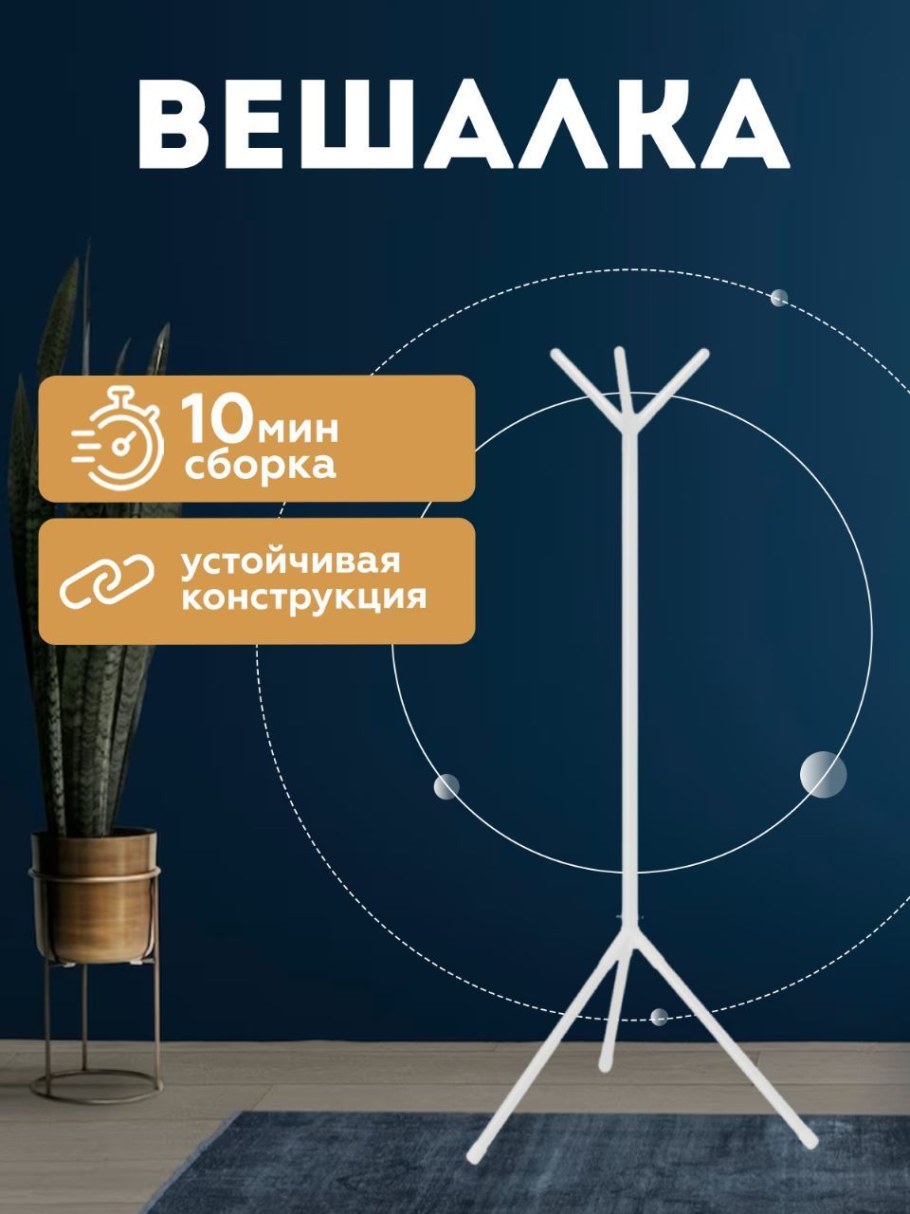 Вешалка напольная Олимп белая деревянная стойка для одежды