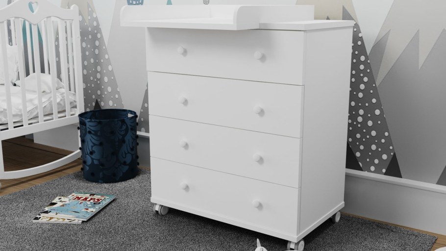 Комод пеленальный "Eva" съемный пеленальный стол, декор Арабески белый