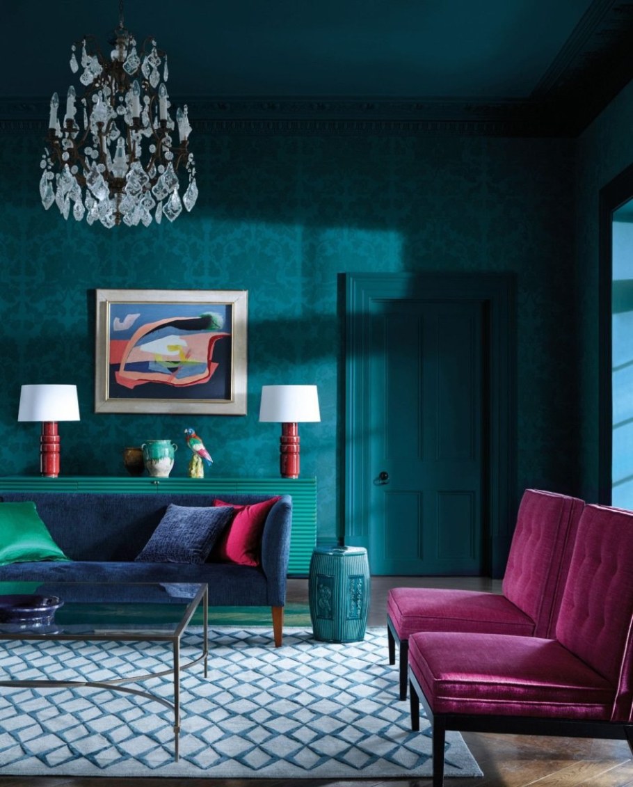 Сине-зеленый цвет в интерьере