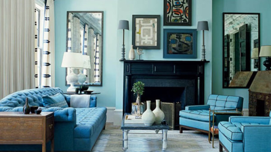 Интерьер гостиной в голубом цвете