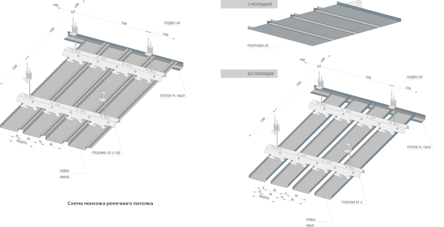 Реечный подвесной потолок «Албес», кубообразная рейка, система а50s