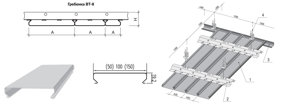 Подвесной металлический потолок типа Албес Perfaten Hook-on система Hi-100