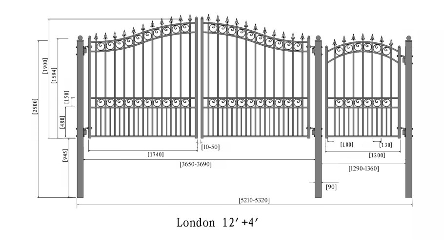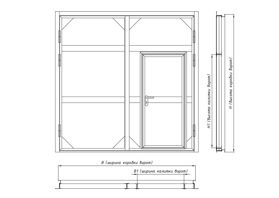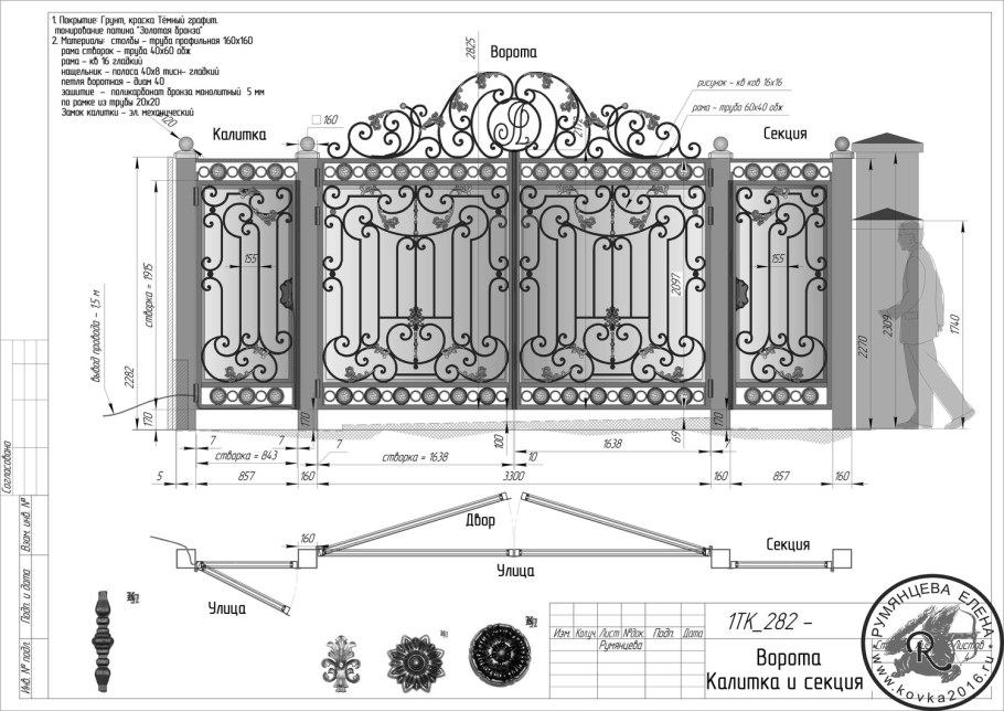 Ворота металлические распашные 4000х4300 с калиткой чертеж