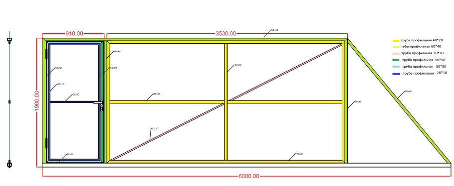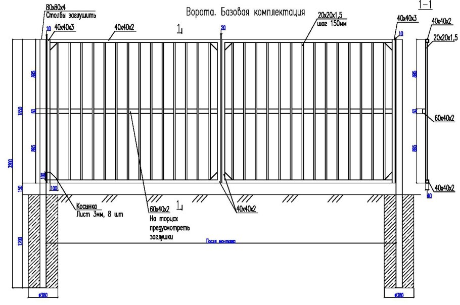 Ворота из профиля 40х20 профлиста с калиткой чертежи
