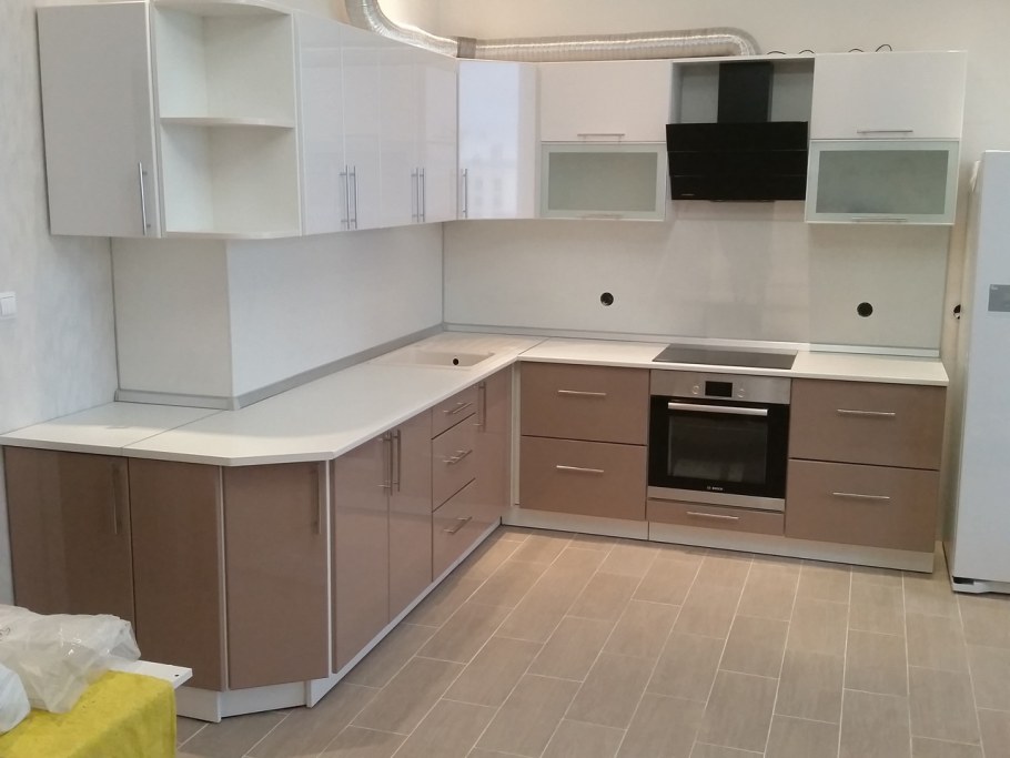 Кухня капучино с белым глянцем угловая