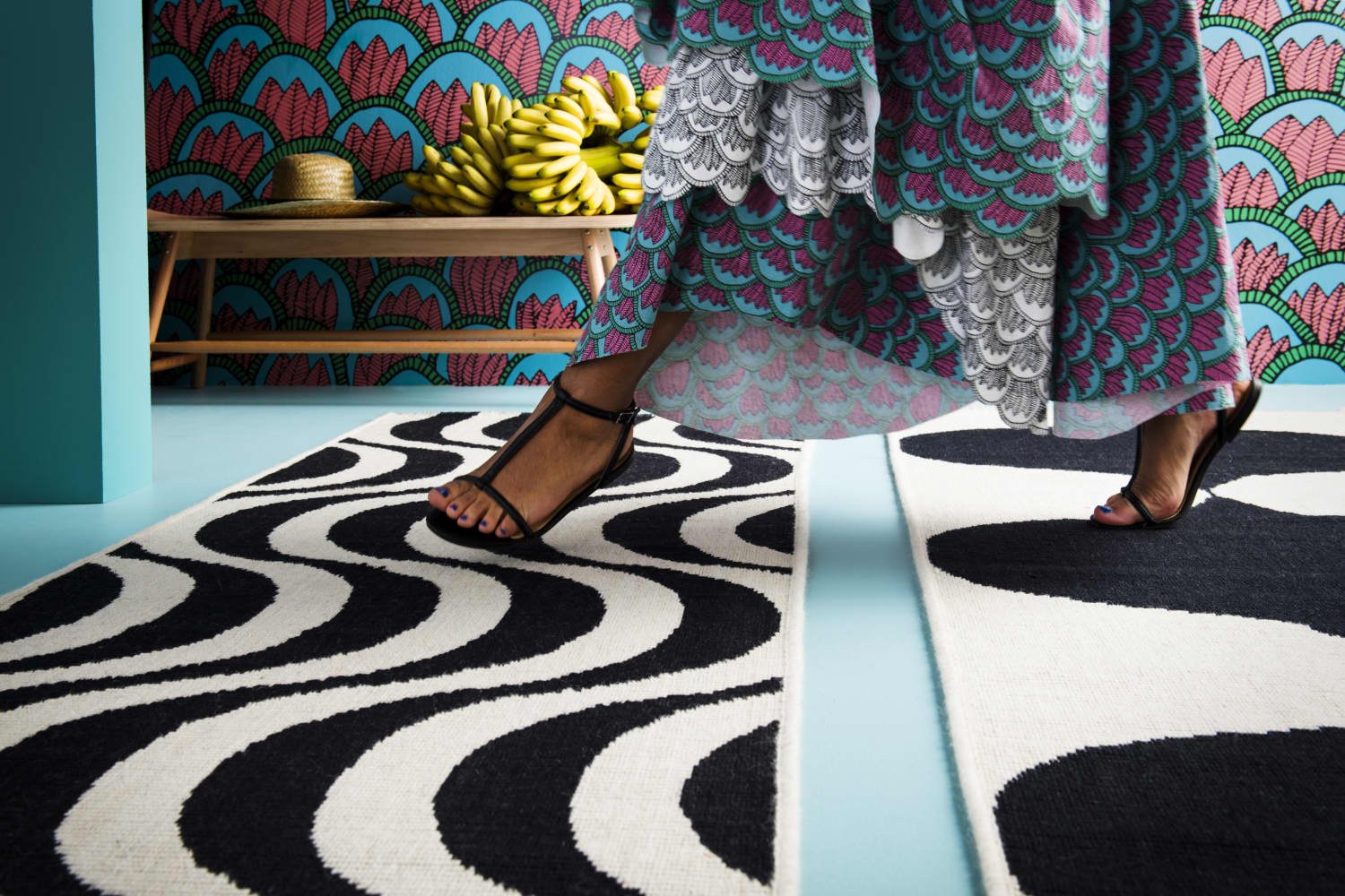 Ковёр икеа черно-белый ЛЭППЛЬЮНГ рута