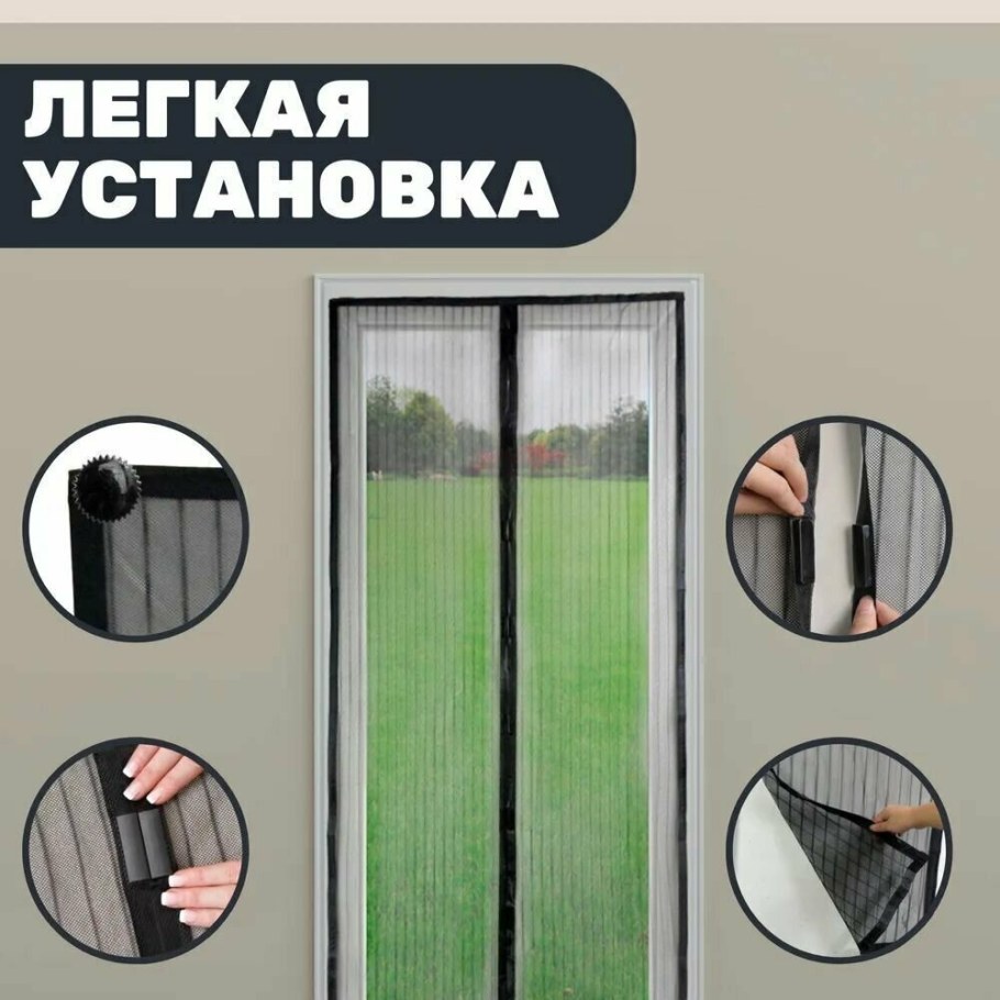 Сетка москитная nadzor, для дверей на магнитах, с крепежом, черная, 95х200 см