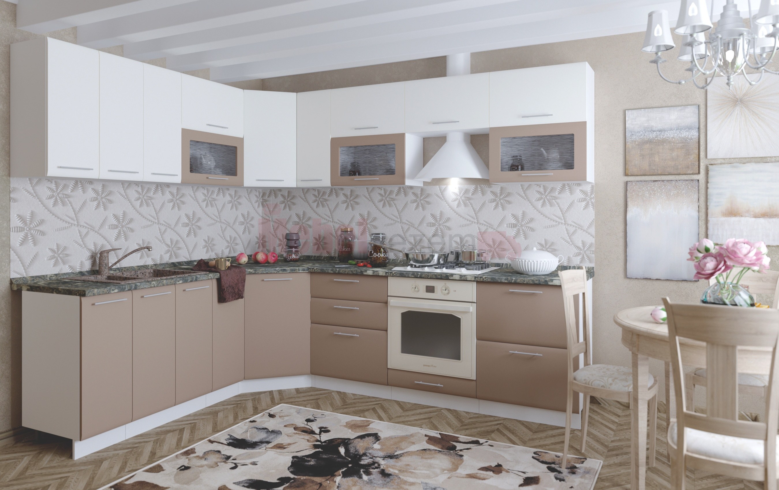 Кухня "Люкс" (гобелен шампань/шоколад матовый/корпус белый)