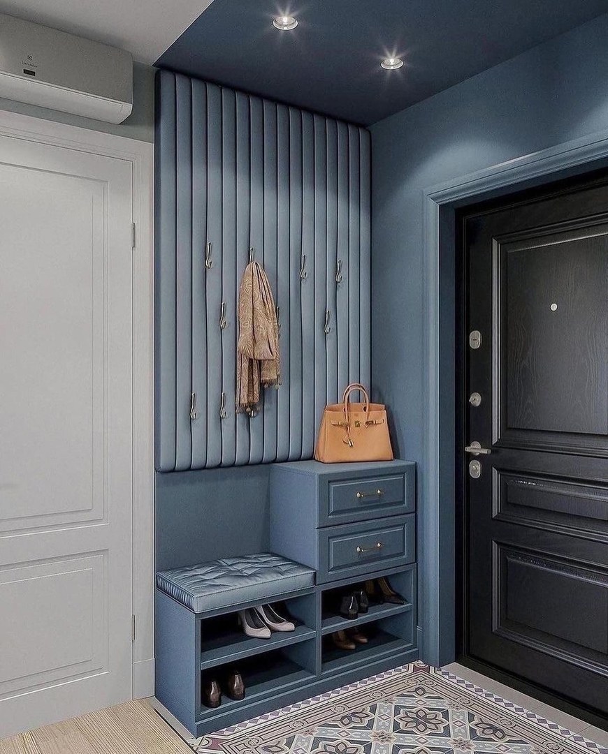 Синий коридор в интерьере