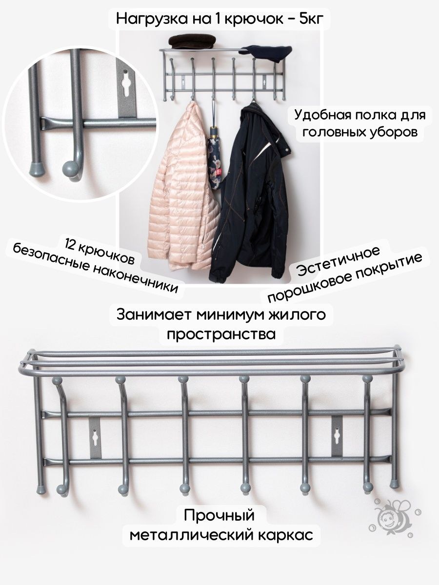 Вешалка настенная с полкой "комфорт 9" серый внк93